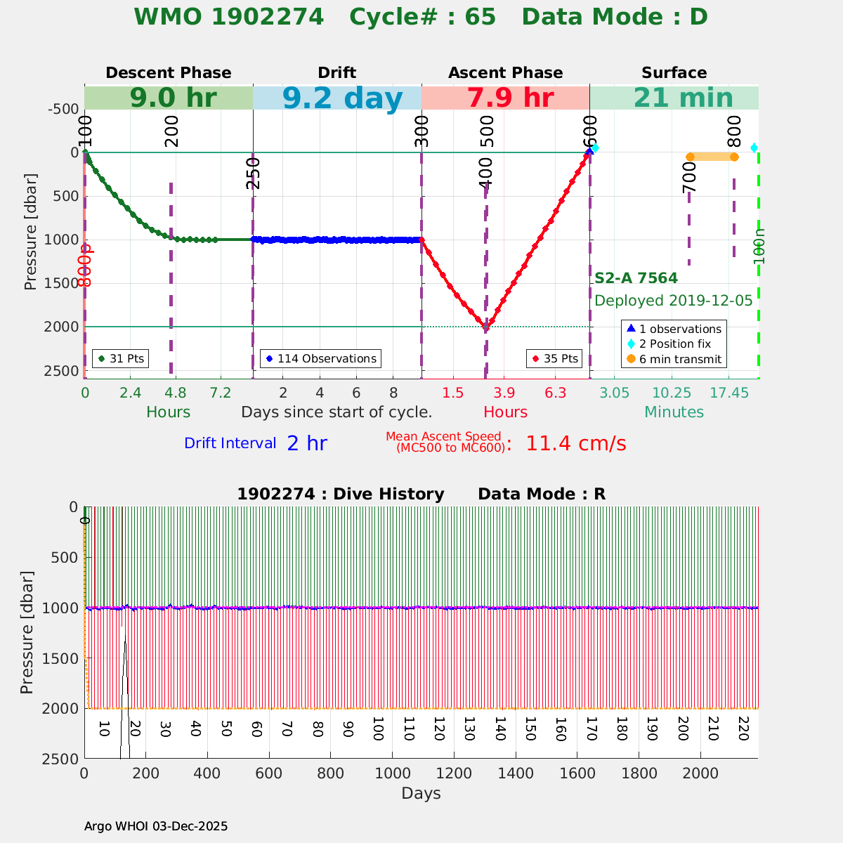 | WMO: #6903261 DAC: coriolis PI: Pierre-Marie POULAIN ARVOR: # FLOATCLOCK: # DRUCK_2900PSIA: #10818338 SBE41CP: #10500 Altimeter Comparison (IFREMER) EuroArgo Link | ![]() |