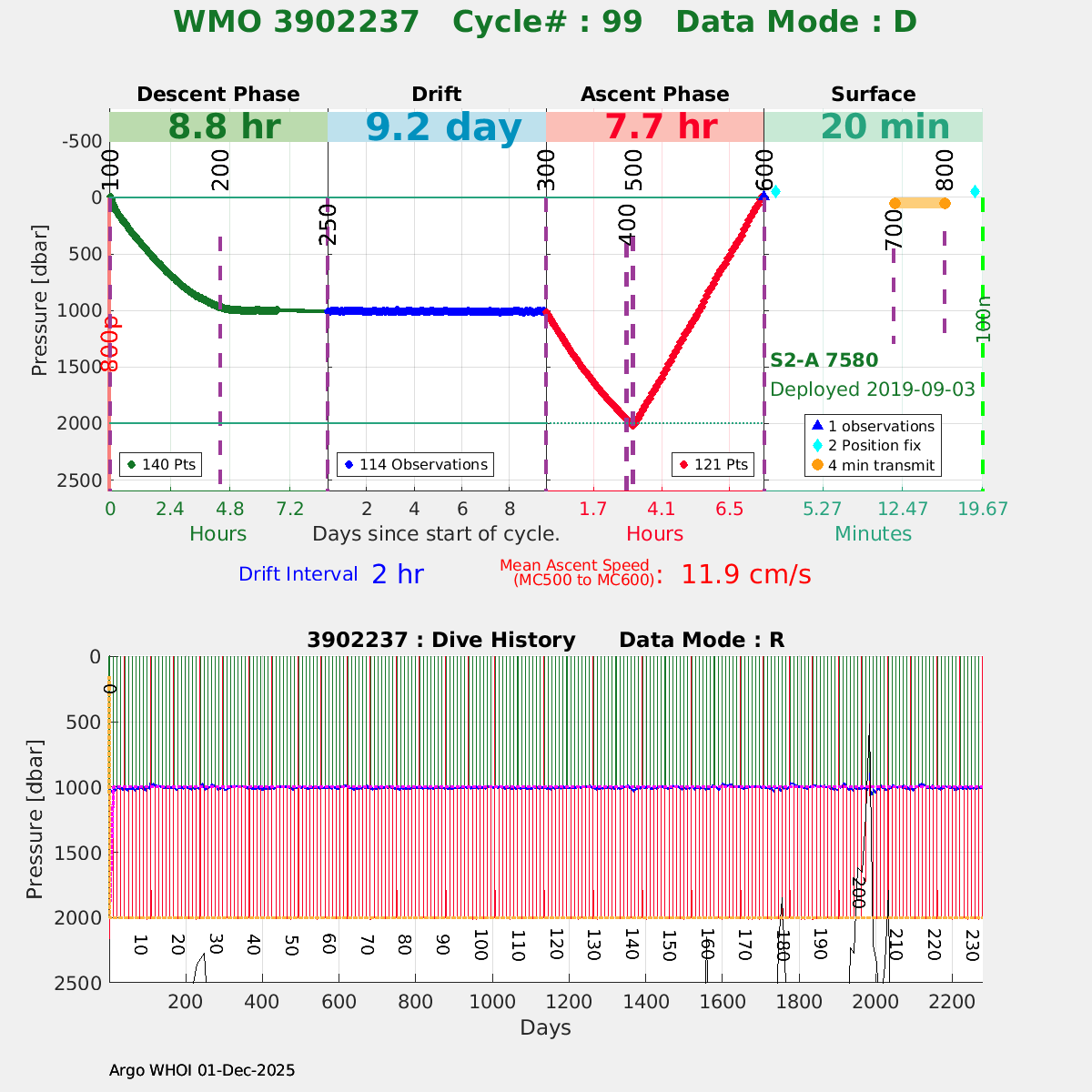 | WMO: #3902243 DAC: aoml PI: SUSAN WIJFFELS, STEVEN JAYNE, PELLE ROBBINS S2-A: #7583 SBE41CP: #11835 DRUCK_2900PSIA: #11218645 Altimeter Comparison (IFREMER) EuroArgo Link | ![]() |