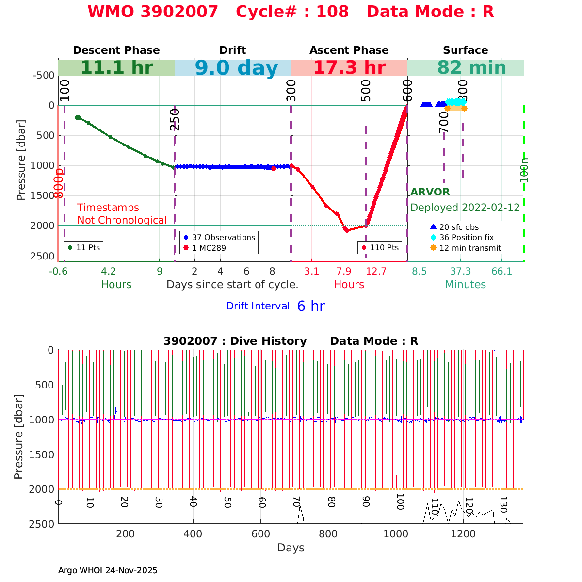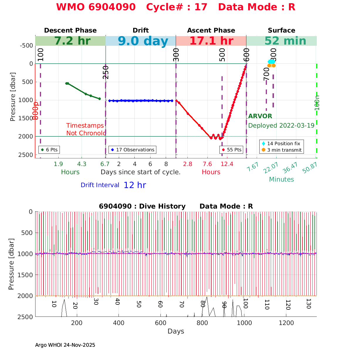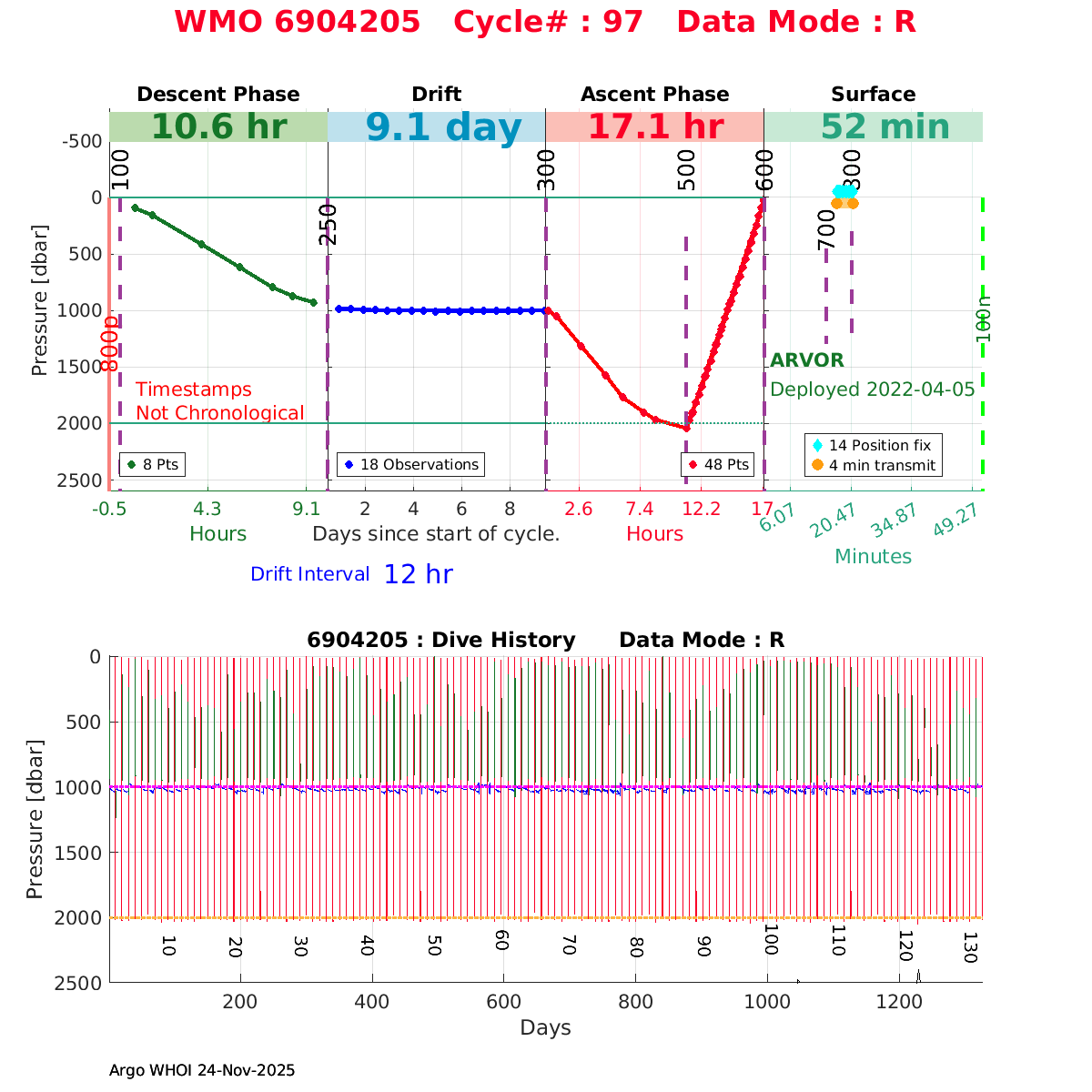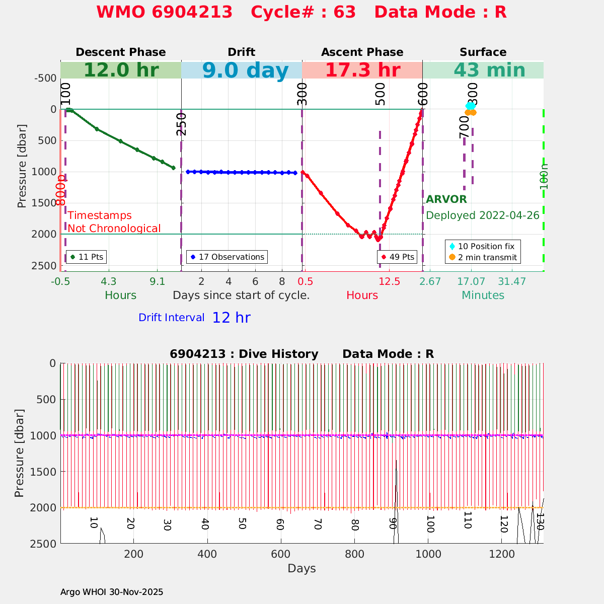 | WMO: #5906488 DAC: aoml PI: STEPHEN RISER/KEN JOHNSON APEX: #9182 SBE41CP: #13308 DRUCK_2900PSIA: #11589088 AANDERAA_OPTODE_4330: #3546 ISUS: #0915 DURA: #0915 ECO_FLBB_AP2: #6154 Altimeter Comparison (IFREMER) EuroArgo Link | ![]() |
