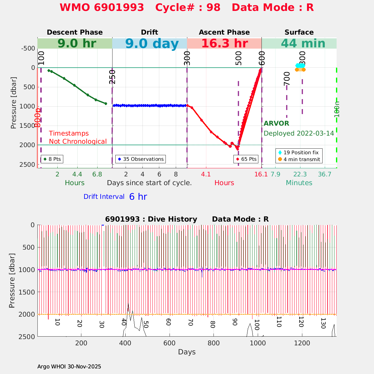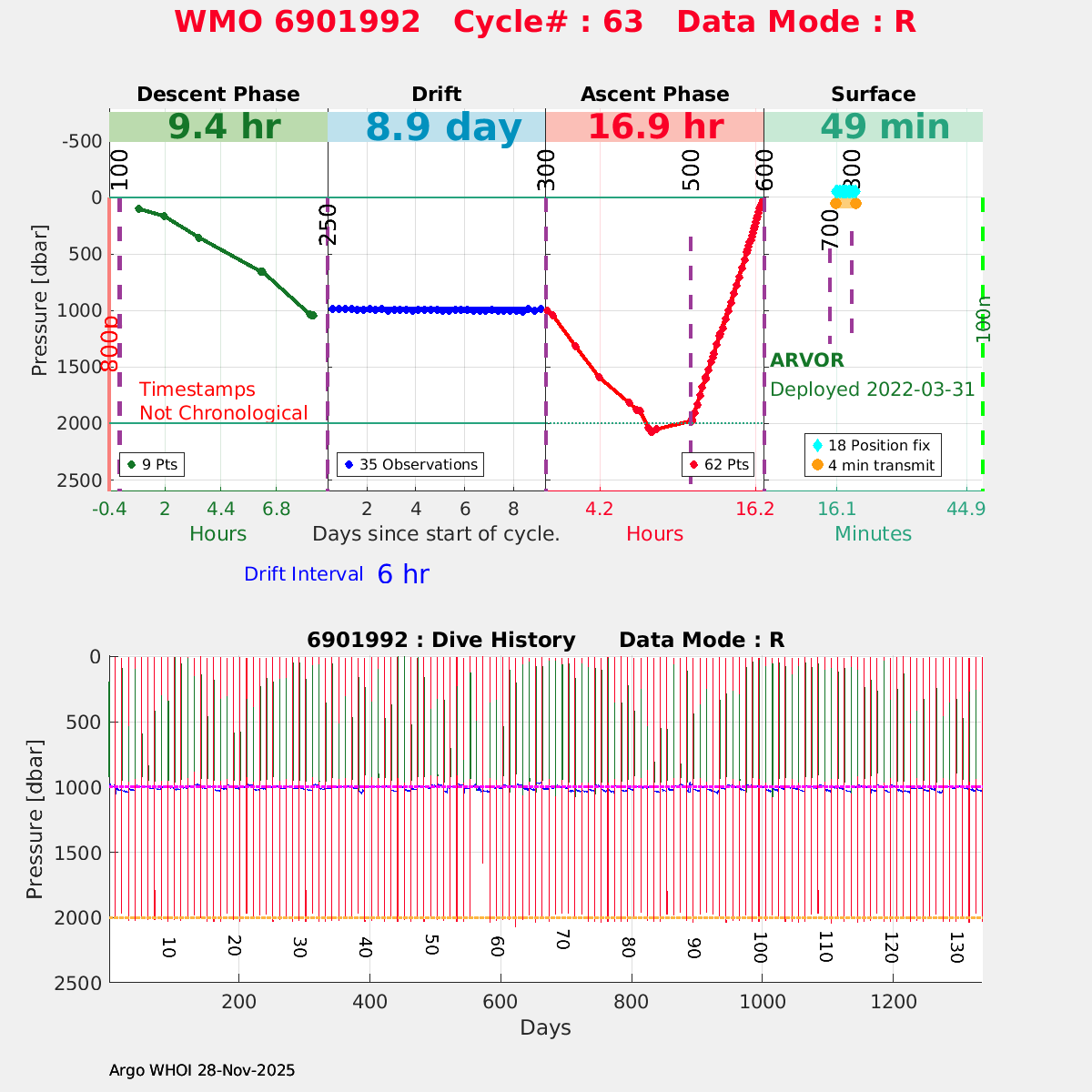 | WMO: #5906492 DAC: aoml PI: STEPHEN RISER/KEN JOHNSON APEX: #9251 SBE41CP: #12486 DRUCK_2900PSIA: #11413864 AANDERAA_OPTODE_4330: #3567 ISUS: #0891 DURA: #0891 ECO_FLBB_AP2: #5503 Altimeter Comparison (IFREMER) EuroArgo Link | ![]() |