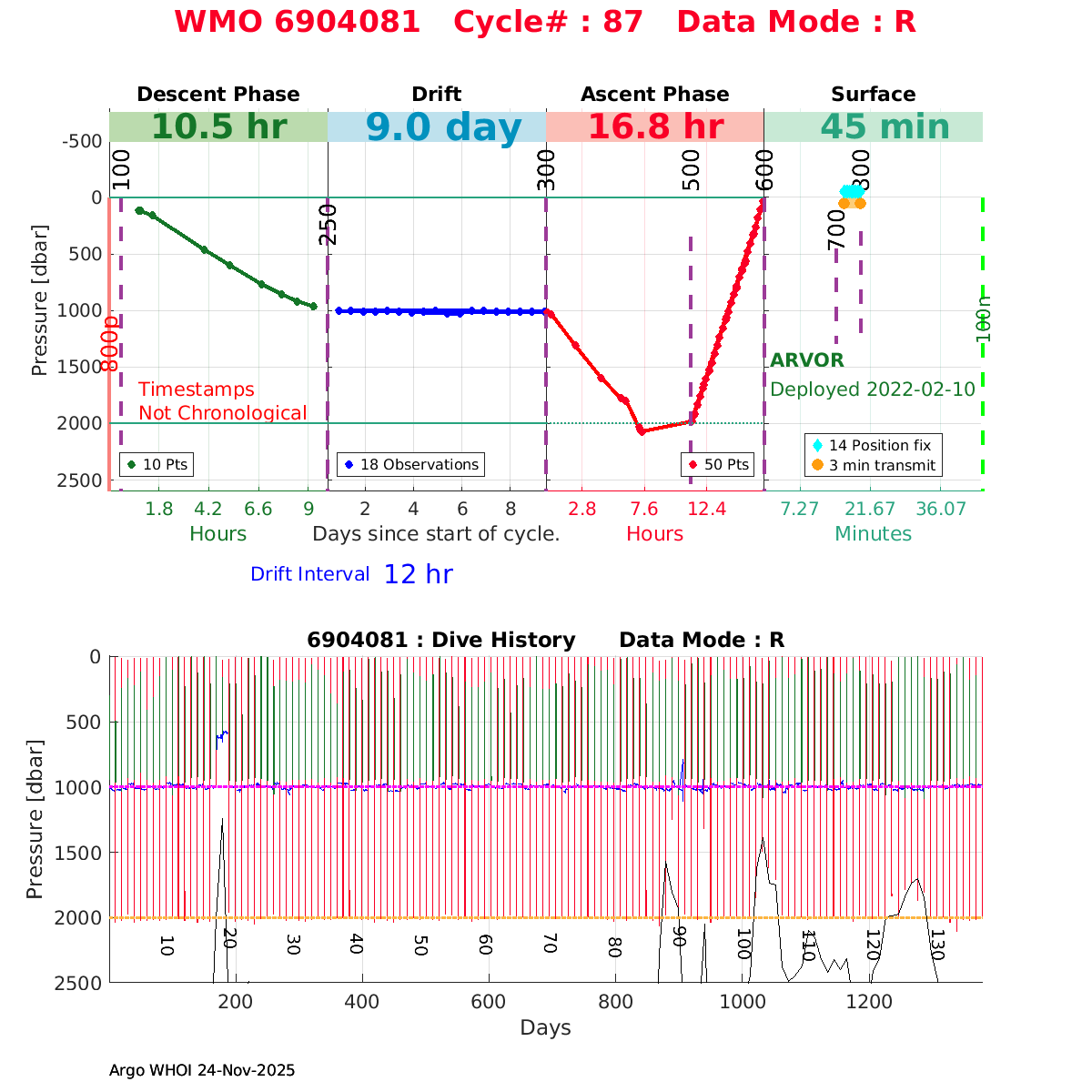 | WMO: #6904081 DAC: coriolis PI: Birgit KLEIN ARVOR: # FLOATCLOCK: # DRUCK_2900PSIA: #11581249 SBE41CP: #13087 Altimeter Comparison (IFREMER) EuroArgo Link | ![]() |