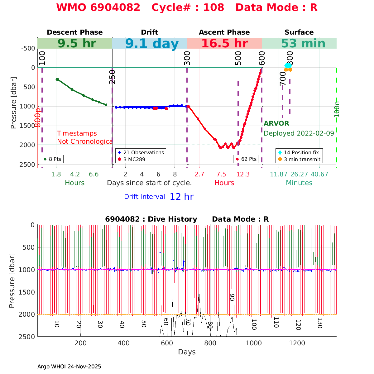 | WMO: #6904082 DAC: coriolis PI: Birgit KLEIN ARVOR: # FLOATCLOCK: # DRUCK: #11581248 SBE41CP: #13086 Altimeter Comparison (IFREMER) EuroArgo Link | ![]() |