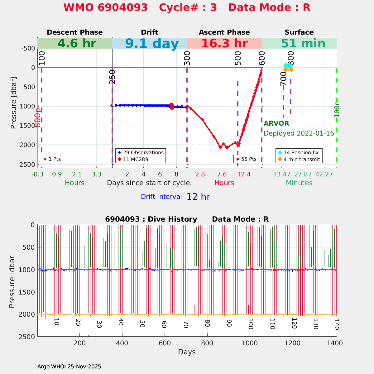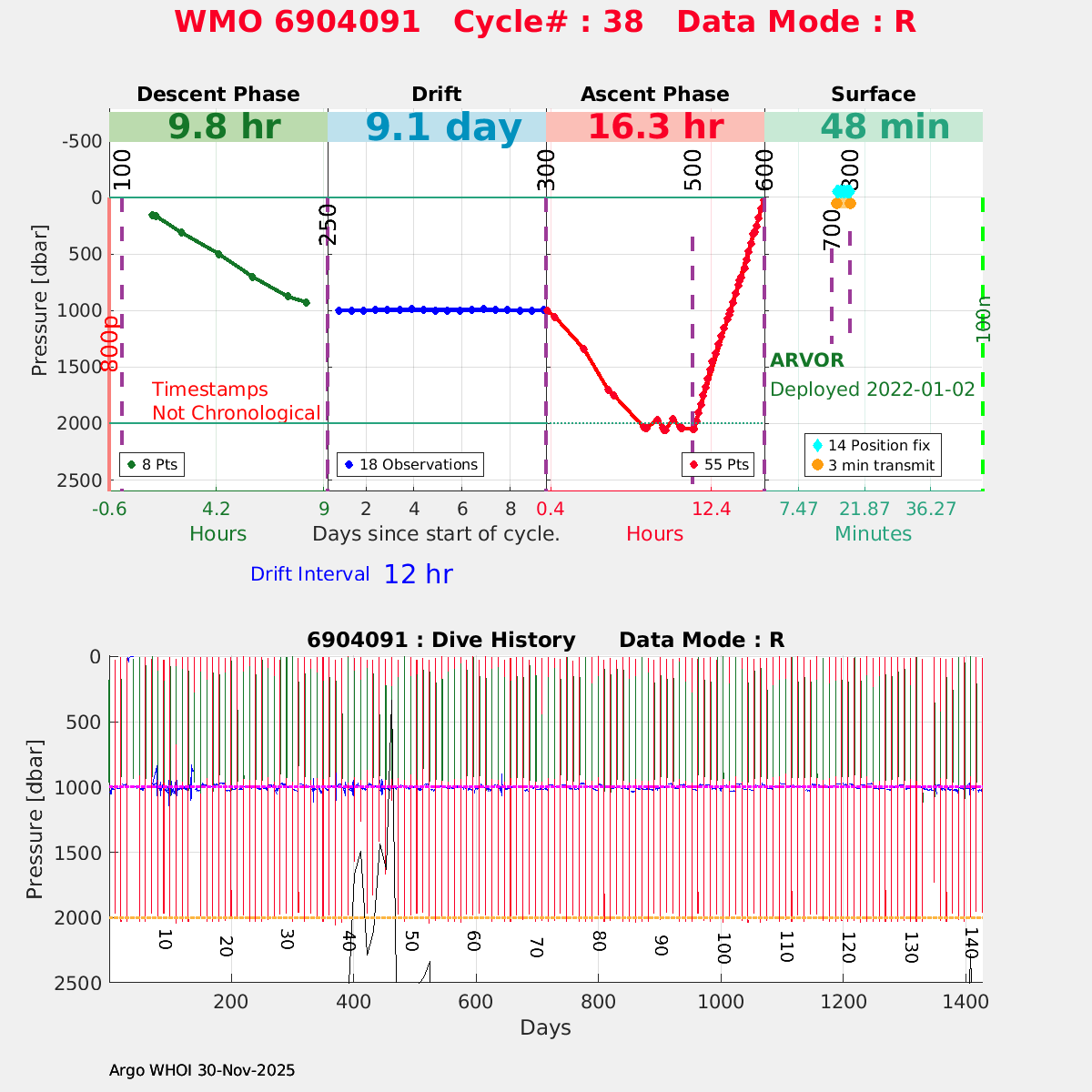 | WMO: #6904091 DAC: coriolis PI: Birgit KLEIN ARVOR: # FLOATCLOCK: # DRUCK_2900PSIA: #11829153 SBE41CP: #14278 Altimeter Comparison (IFREMER) EuroArgo Link | ![]() |
