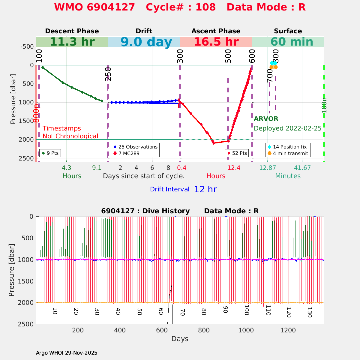 | WMO: #6904211 DAC: coriolis PI: Birgit KLEIN ARVOR: # FLOATCLOCK: # DRUCK: #11977990 SBE41CP: #16673 Altimeter Comparison (IFREMER) EuroArgo Link | ![]() |