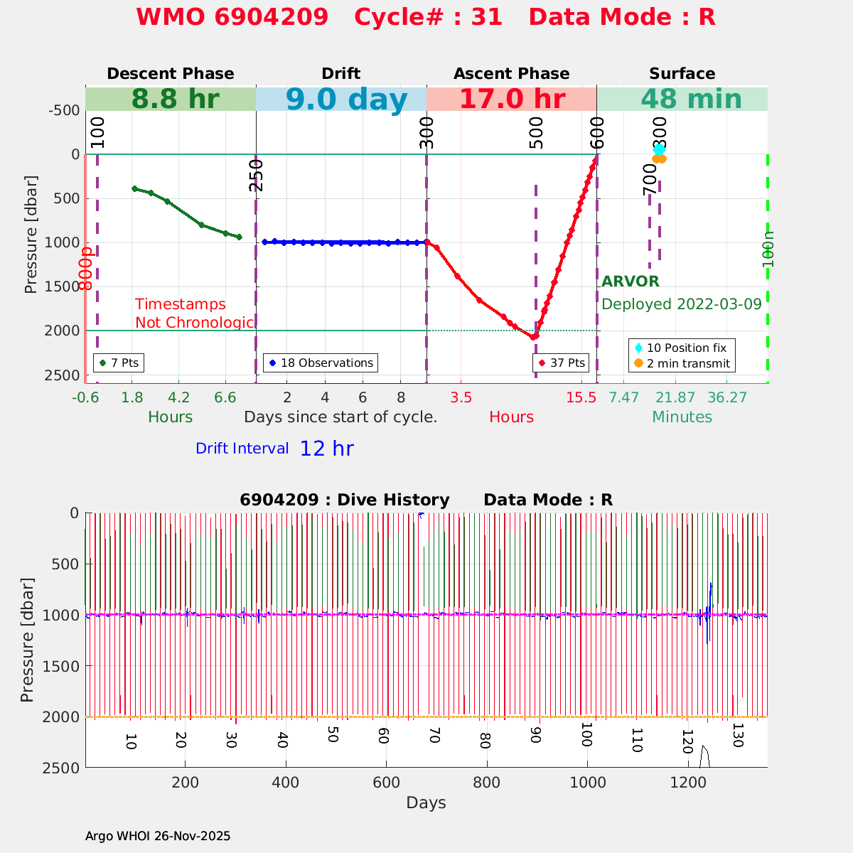 | WMO: #1902377 DAC: aoml PI: SUSAN WIJFFELS, STEVEN JAYNE, PELLE ROBBINS S2-A: #7612 SBE41CP: #12159 DRUCK_2900PSIA: #11308034 Altimeter Comparison (IFREMER) EuroArgo Link | ![]() |