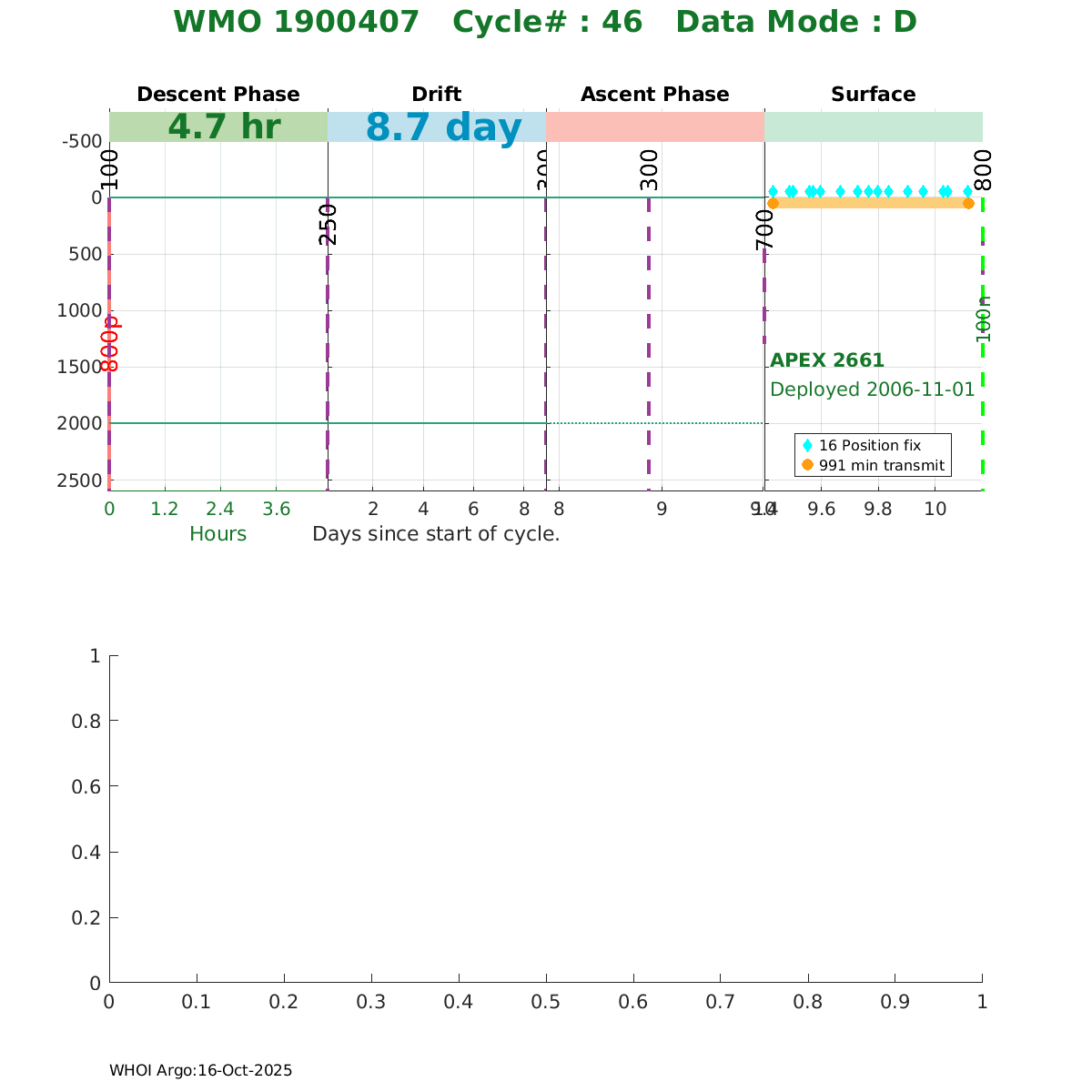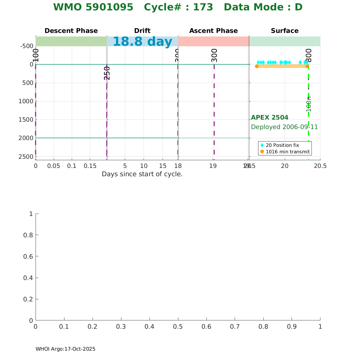 | WMO: #2900673 DAC: jma PI: JAMSTEC APEX: #2907 DRUCK: #2319990 SBE41CP_V1.9a: #1553 Altimeter Comparison (IFREMER) EuroArgo Link | ![]() |