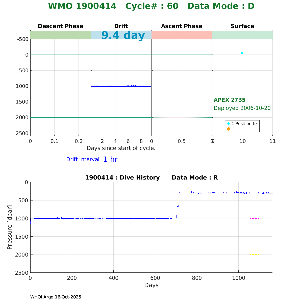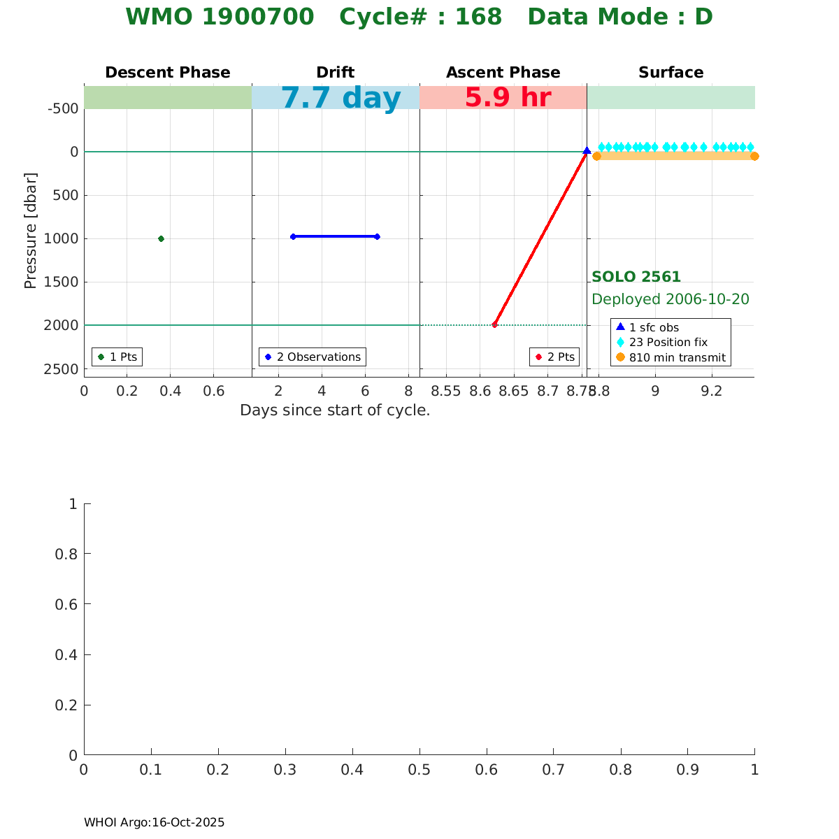 | WMO: #2900679 DAC: jma PI: JAMSTEC APEX: #2909 DRUCK: #2319992 SBE41CP_V1.9a: #1555 Altimeter Comparison (IFREMER) EuroArgo Link | ![]() |