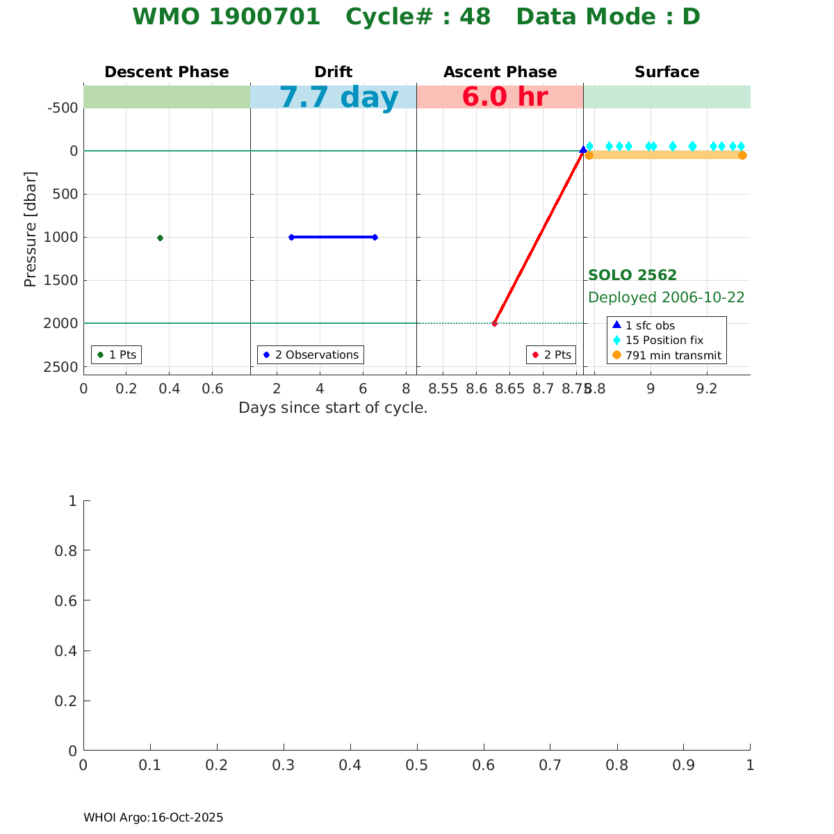 | WMO: #1900670 DAC: jma PI: JAMSTEC APEX: #2346 DRUCK: #8236 SBE41: #2433 Altimeter Comparison (IFREMER) EuroArgo Link | ![]() |