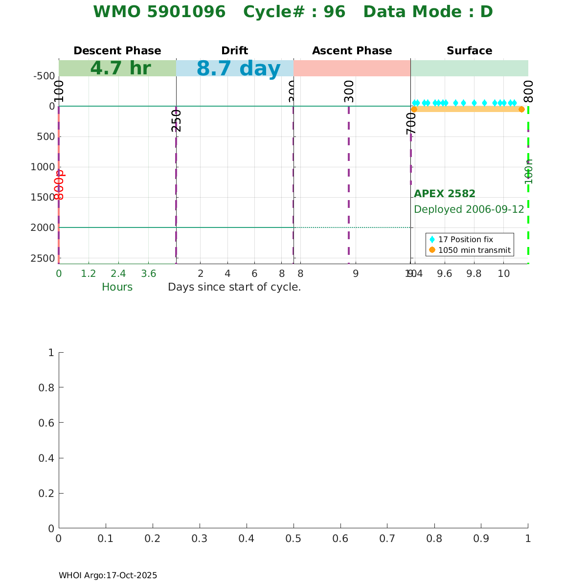 | WMO: #2900678 DAC: jma PI: JAMSTEC APEX: #2908 DRUCK: #2319991 SBE41CP_V1.9a: #1554 Altimeter Comparison (IFREMER) EuroArgo Link | ![]() |