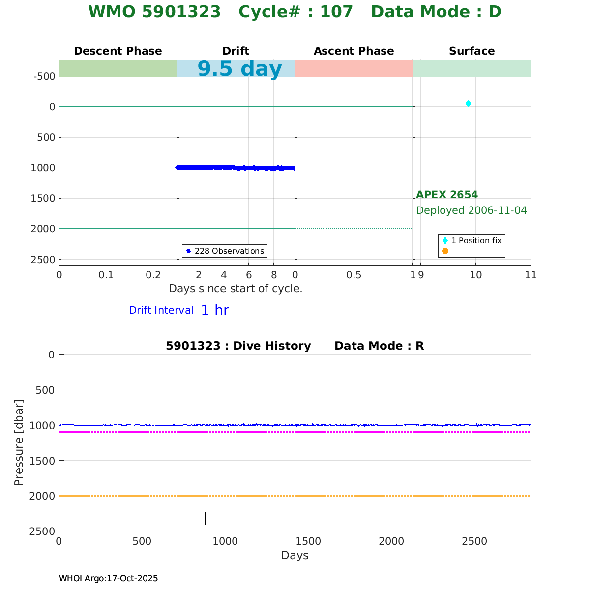 | WMO: #5901142 DAC: csiro PI: Susan Wijffels APEX: #2325 SBE41_V2.6: #2398 DRUCK: #8172 Altimeter Comparison (IFREMER) EuroArgo Link | ![]() |