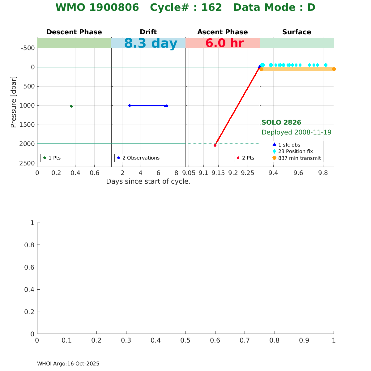 | WMO: #1900806 DAC: aoml PI: DEAN ROEMMICH SOLO: #2826 DRUCK_2900PSIA: #2631933 SBE41CP_V2: #2356 Altimeter Comparison (IFREMER) EuroArgo Link | ![]() |