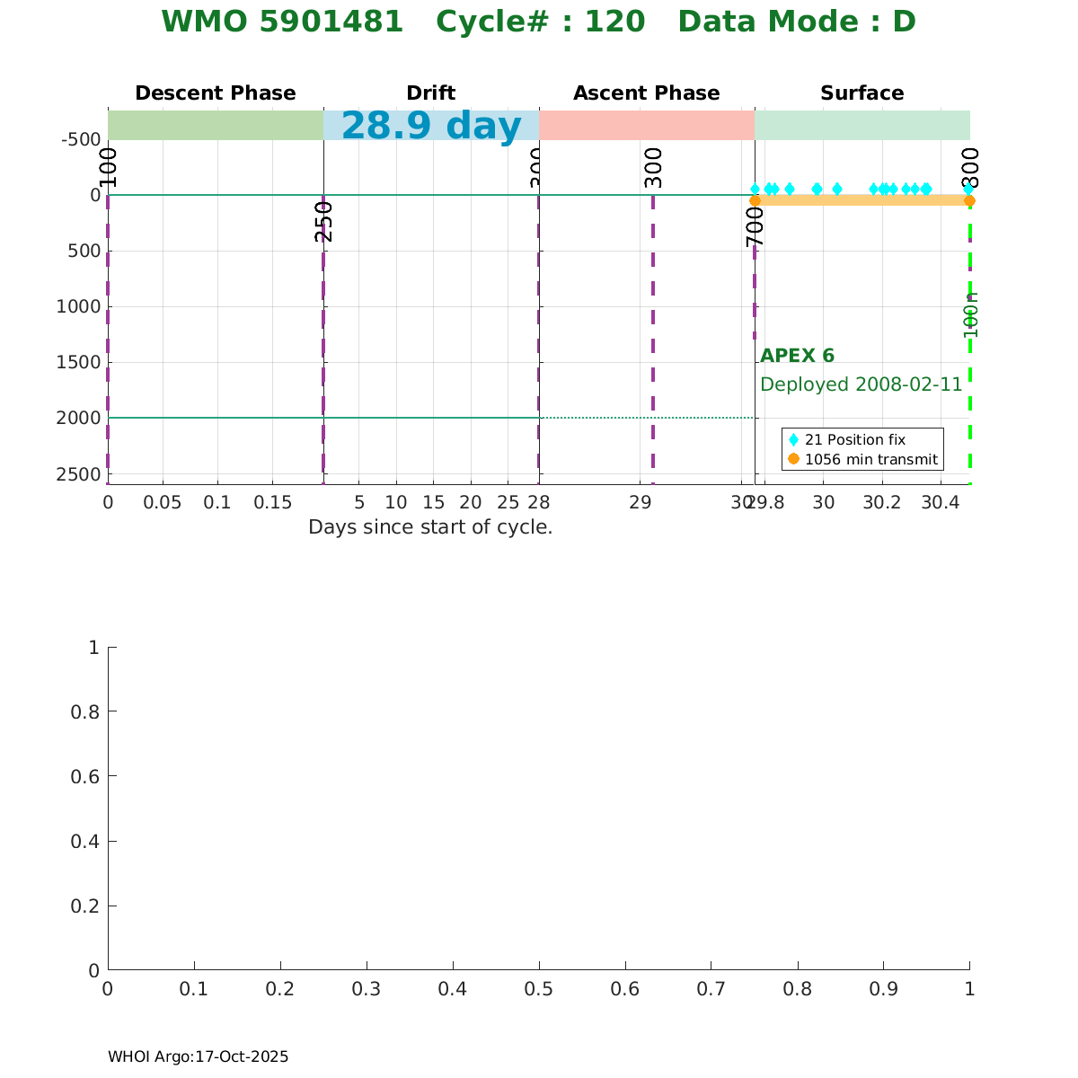 | WMO: #5901648 DAC: csiro PI: Susan Wijffels APEX: #3629 SBE41_V2.6: #3605 DRUCK: #2458987 AANDERAA_OPTODE_3830: #881 Altimeter Comparison (IFREMER) EuroArgo Link | ![]() |