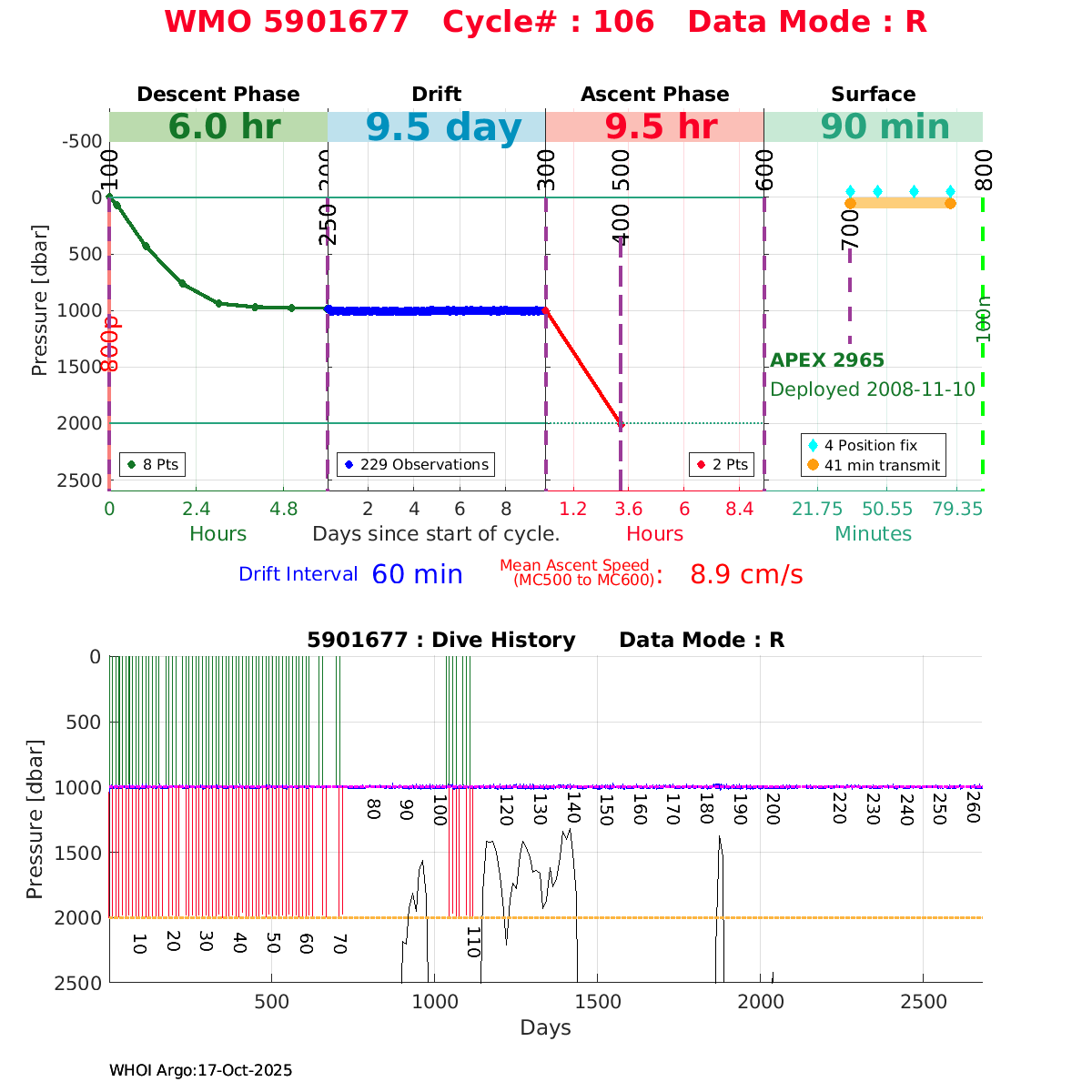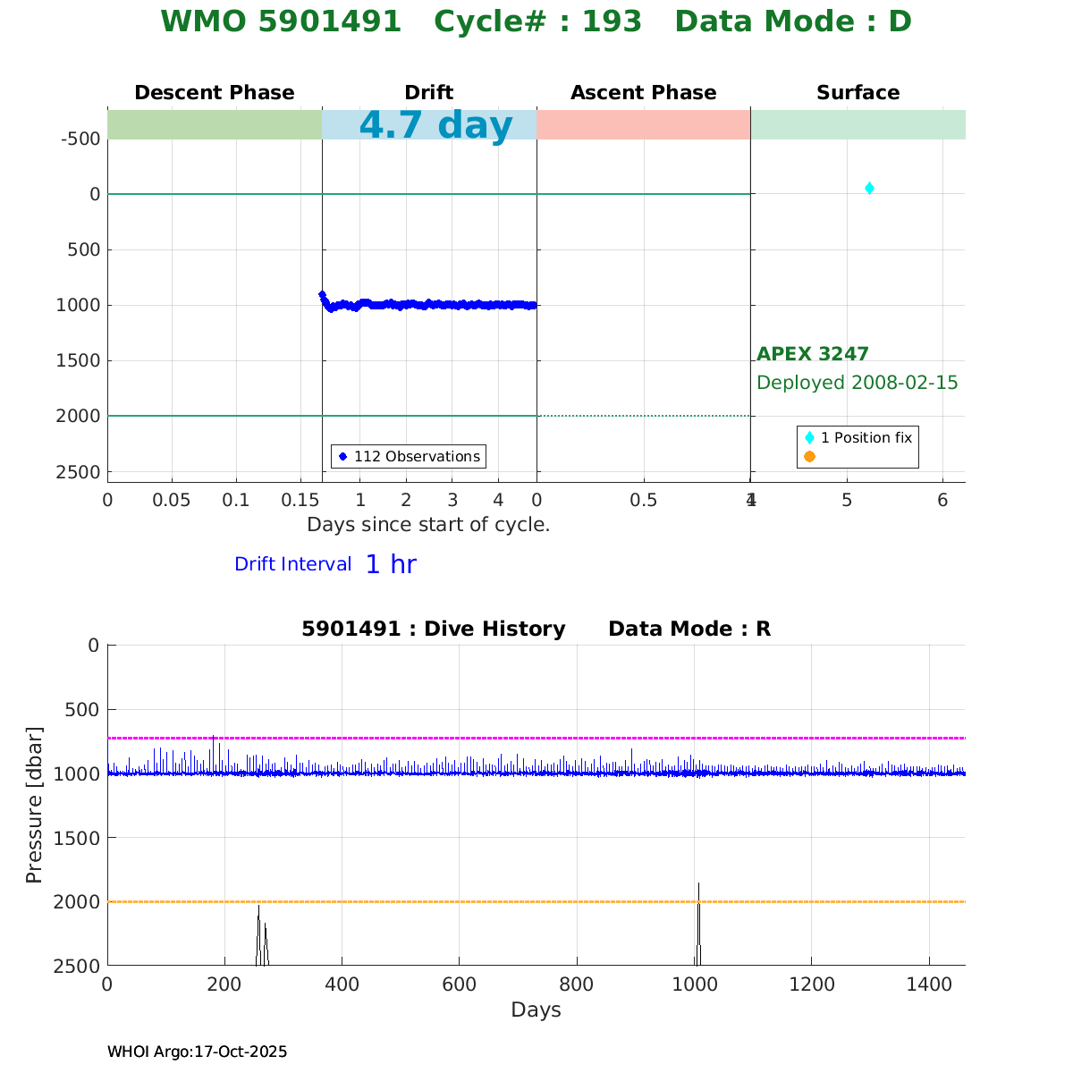 | WMO: #5901483 DAC: aoml PI: STEPHEN RISER APEX: #3137 SBE41: #3215 DRUCK_2900PSIA: #2355479 Altimeter Comparison (IFREMER) EuroArgo Link | ![]() |