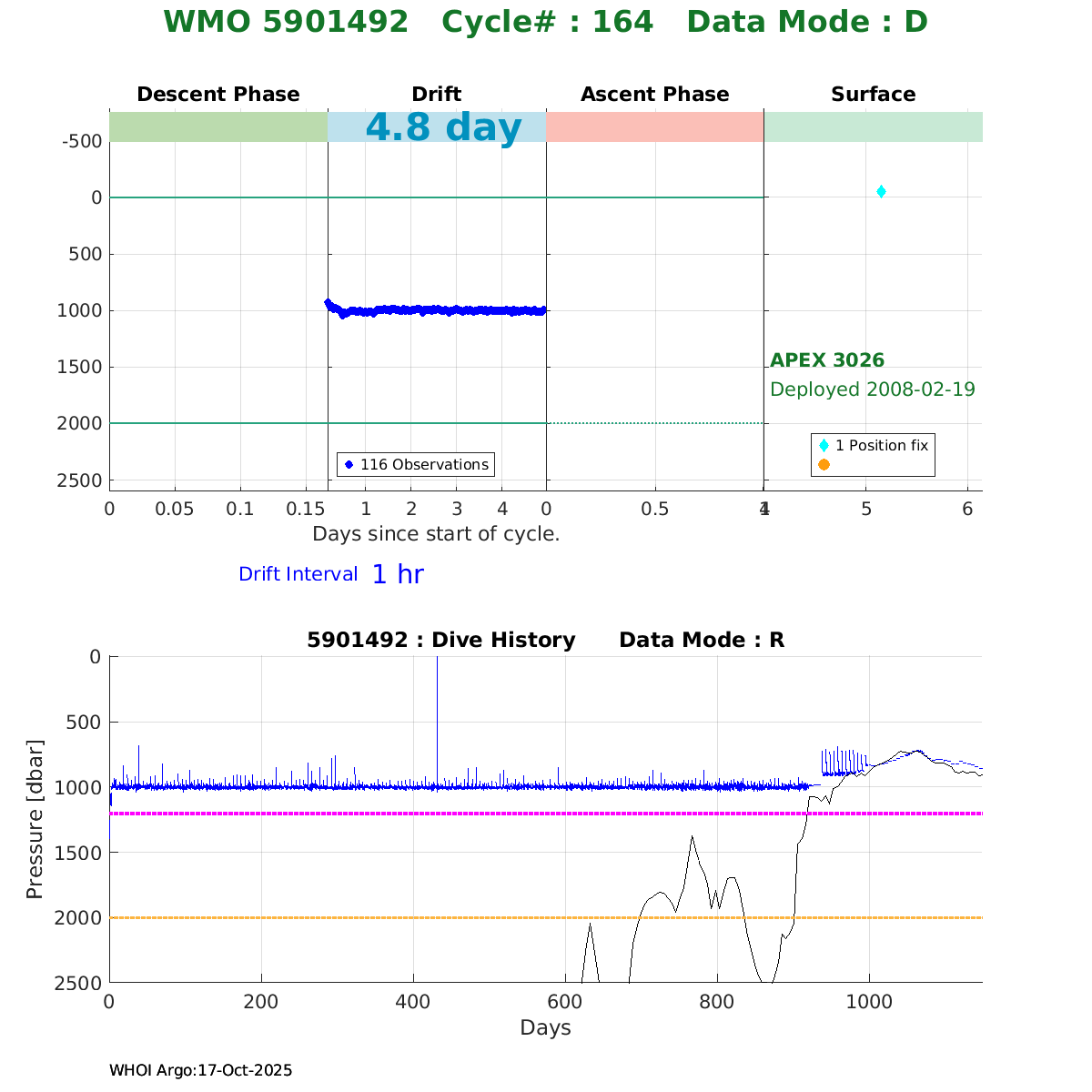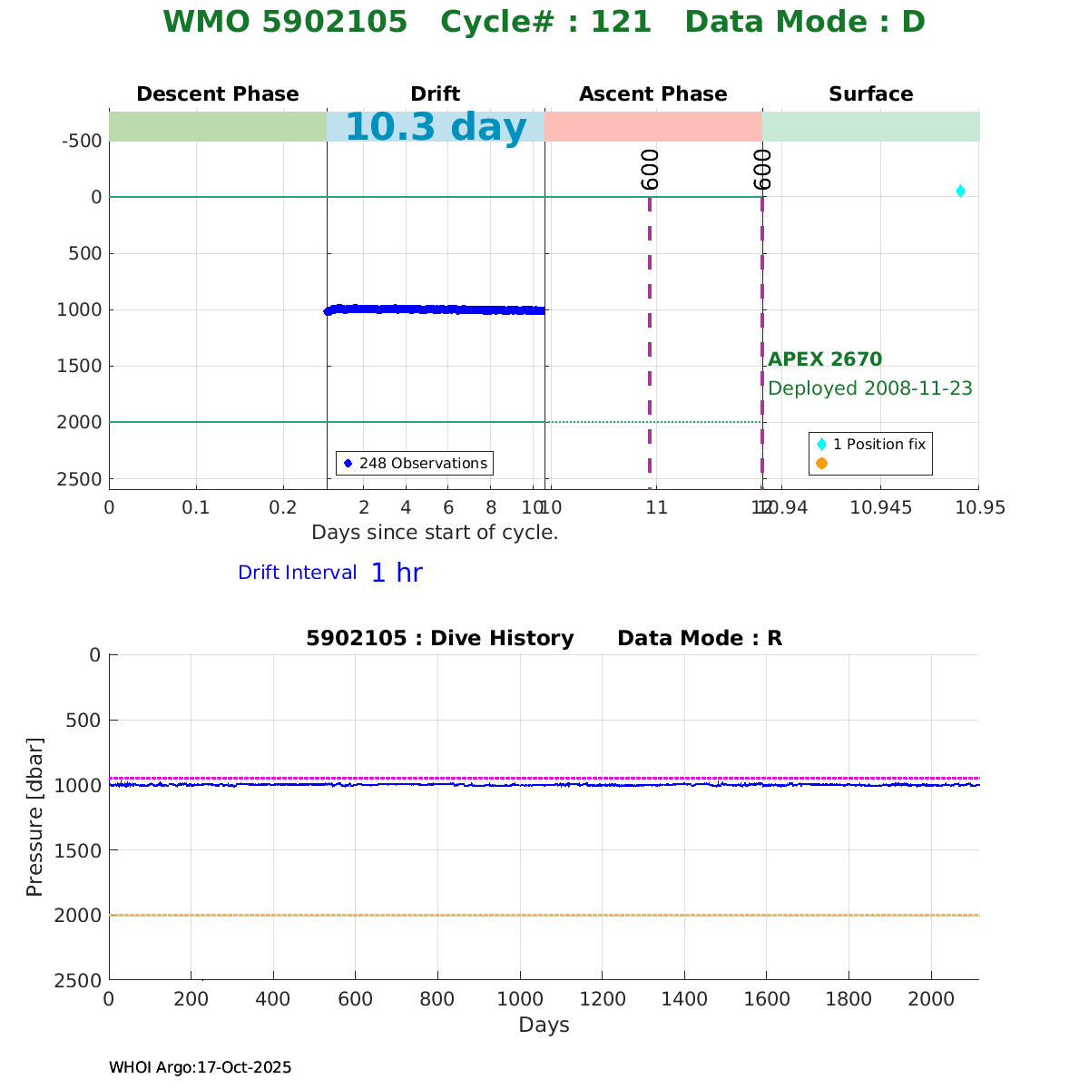 | WMO: #1901131 DAC: csiro PI: Susan Wijffels APEX: #3978 SBE41_V2.6: #3953 DRUCK: #2606502 Altimeter Comparison (IFREMER) EuroArgo Link | ![]() |