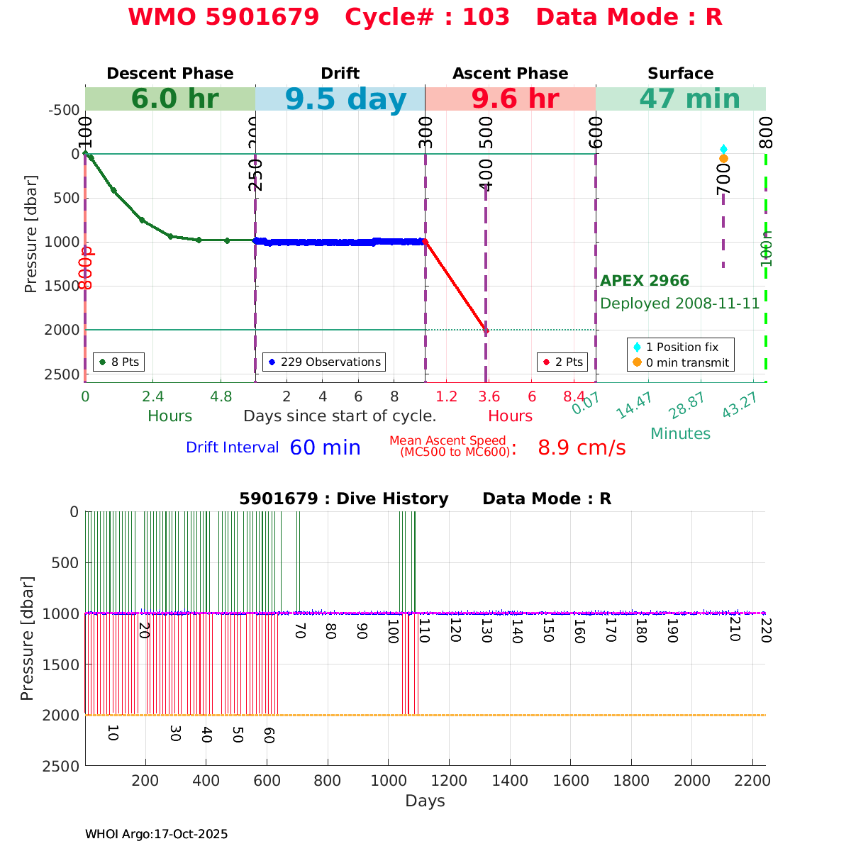 | WMO: #1901060 DAC: bodc PI: Jon Turton APEX: #2711 DRUCK_2900PSIA: #9562 SBE41: #2700 Altimeter Comparison (IFREMER) EuroArgo Link | ![]() |