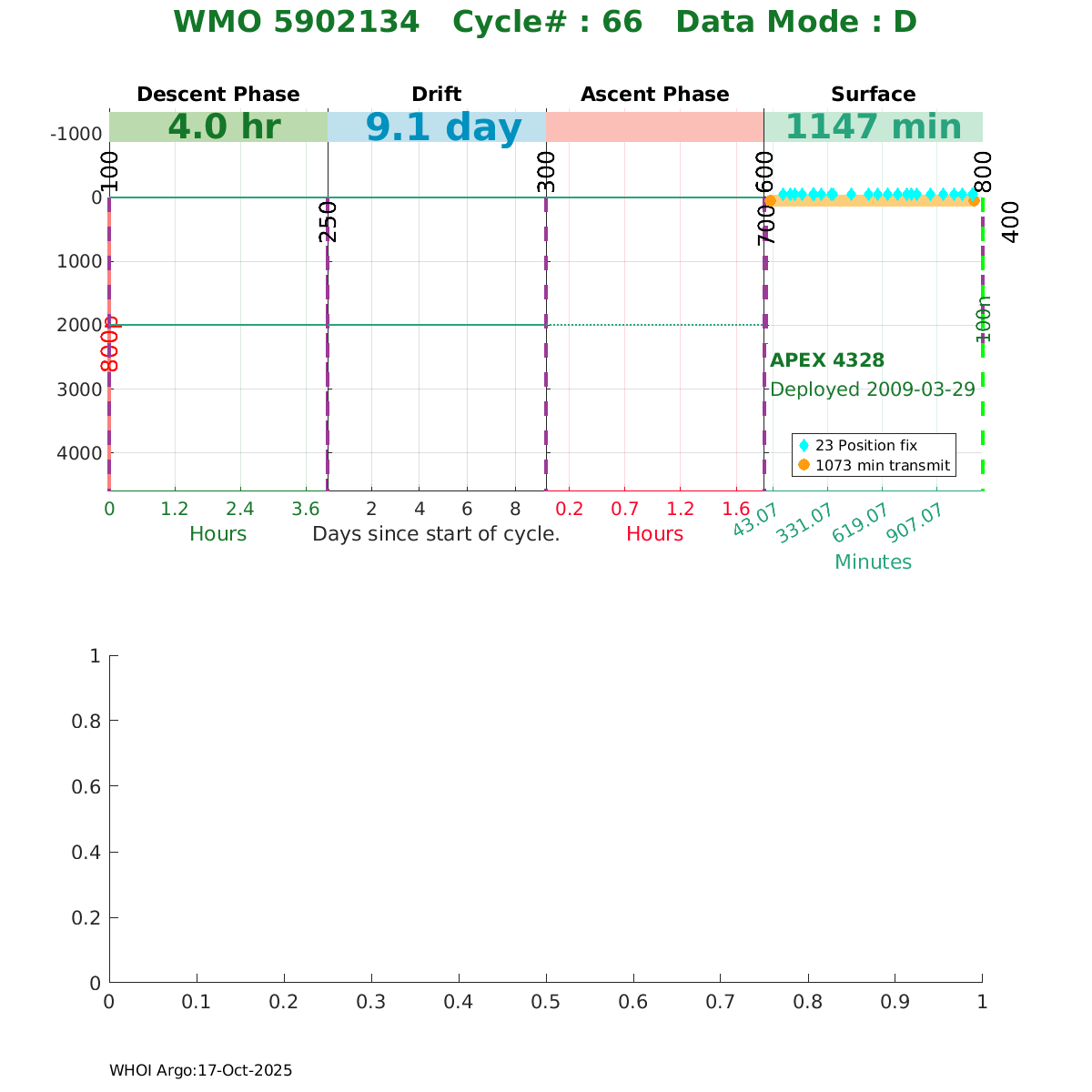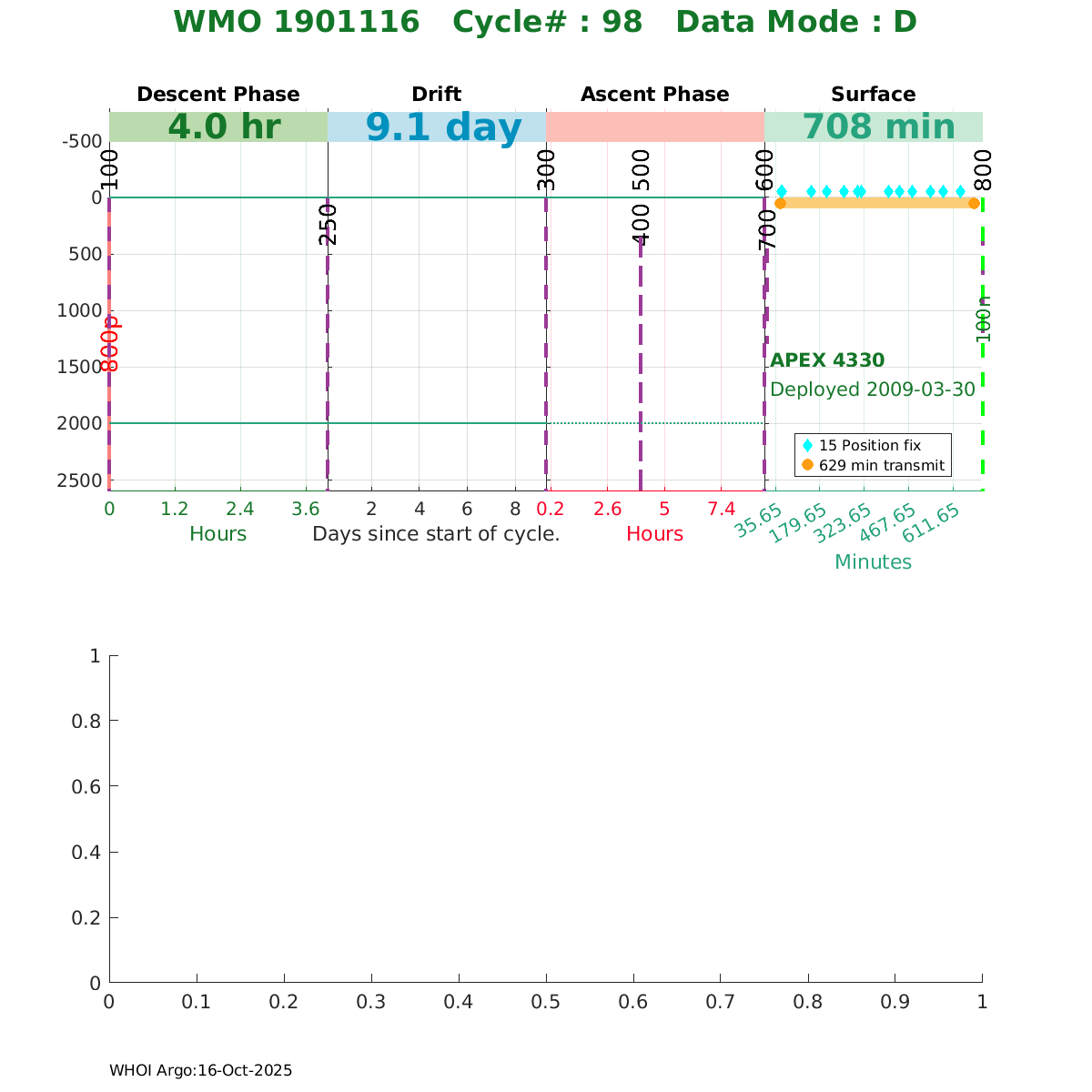 | WMO: #1901117 DAC: aoml PI: STEPHEN RISER APEX: #4283 SBE41: #4295 DRUCK_2900PSIA: #2724826 Altimeter Comparison (IFREMER) EuroArgo Link | ![]() |