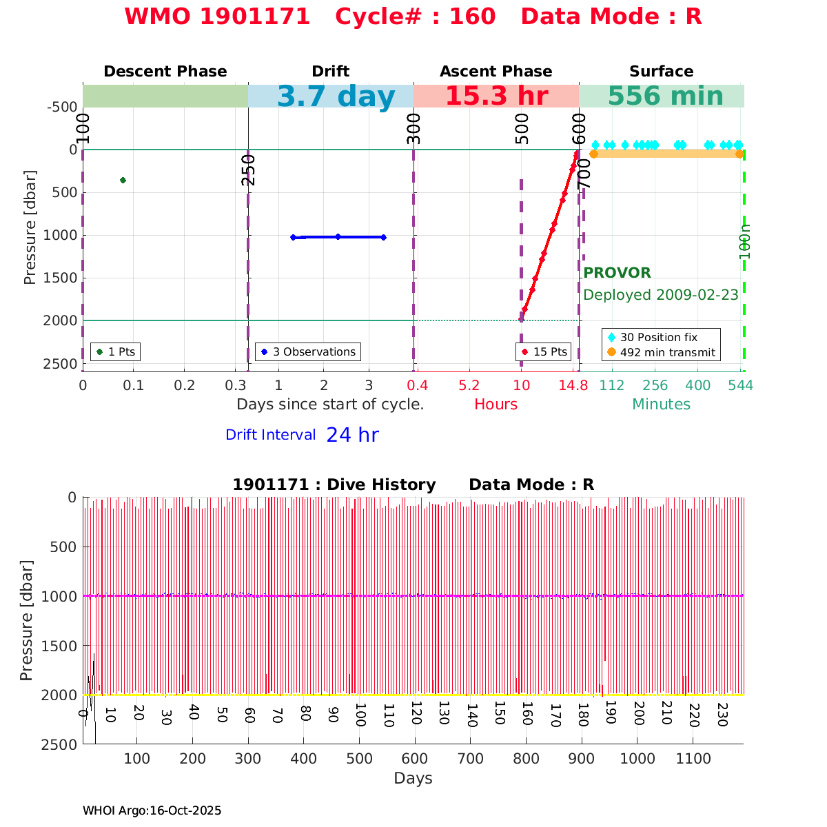 | WMO: #1901371 DAC: aoml PI: STEPHEN RISER APEX: #4284 SBE41: #4300 DRUCK_2900PSIA: #2724831 Altimeter Comparison (IFREMER) EuroArgo Link | ![]() |