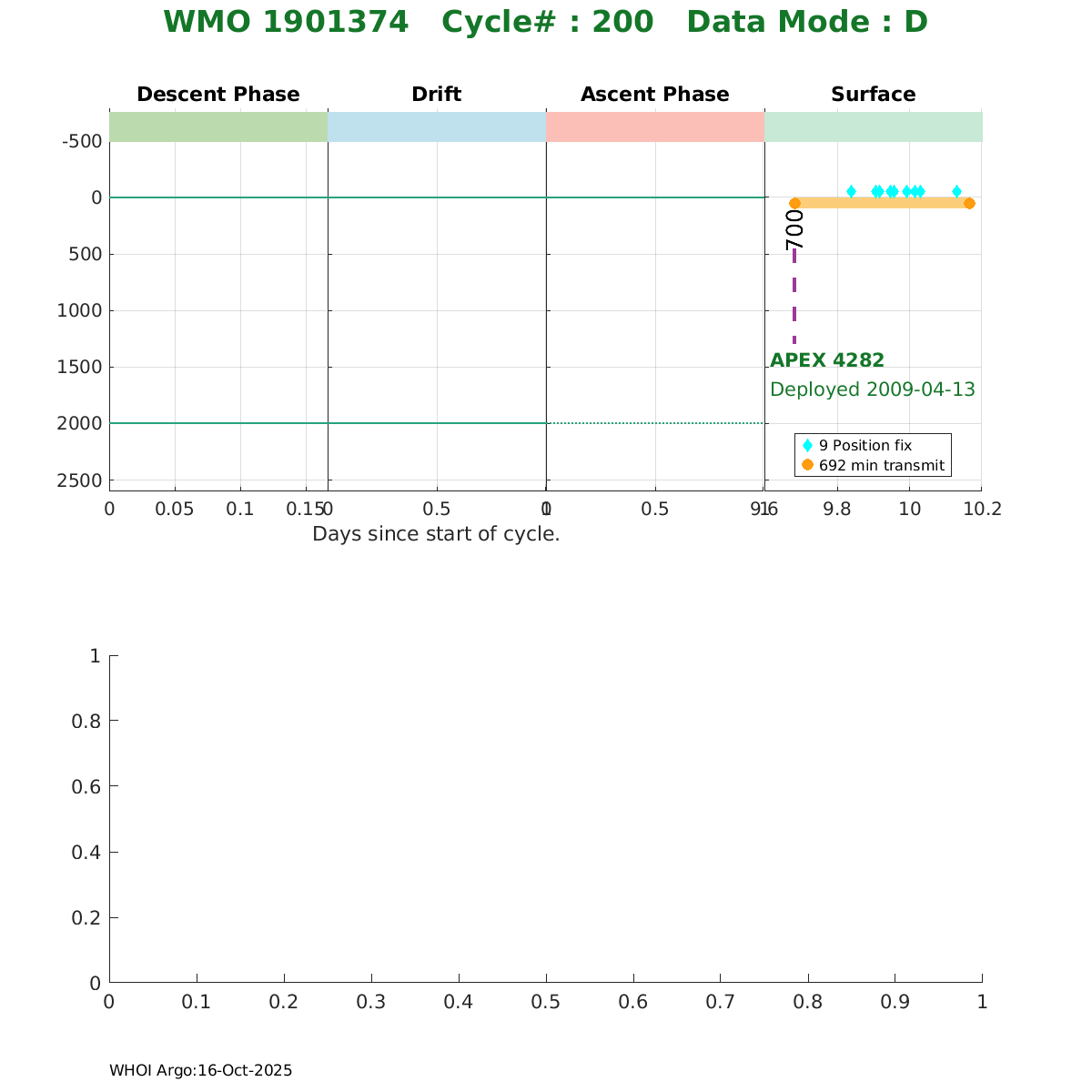 | WMO: #5901925 DAC: jma PI: JAMSTEC APEX: #4239 DRUCK: #2952041 SBE41: #4237 Altimeter Comparison (IFREMER) EuroArgo Link | ![]() |