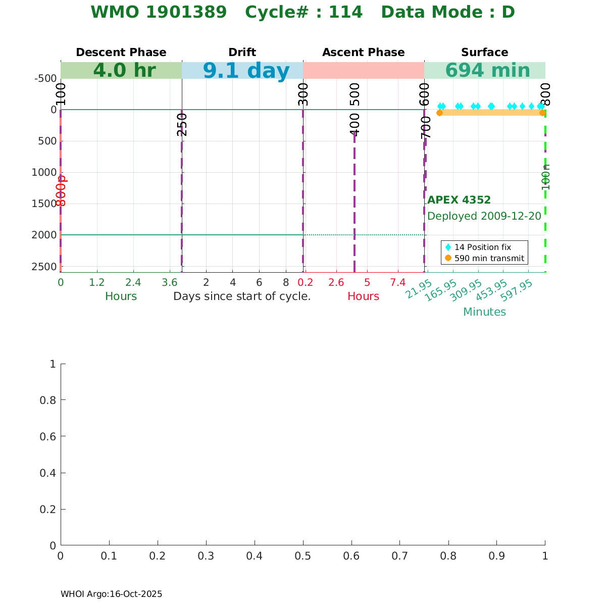 | WMO: #1901372 DAC: aoml PI: STEPHEN RISER APEX: #4325 SBE41: #4420 DRUCK_2900PSIA: #2736946 Altimeter Comparison (IFREMER) EuroArgo Link | ![]() |