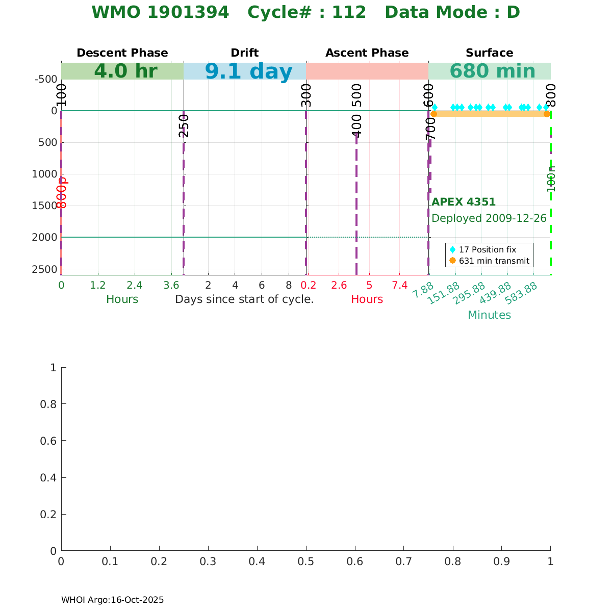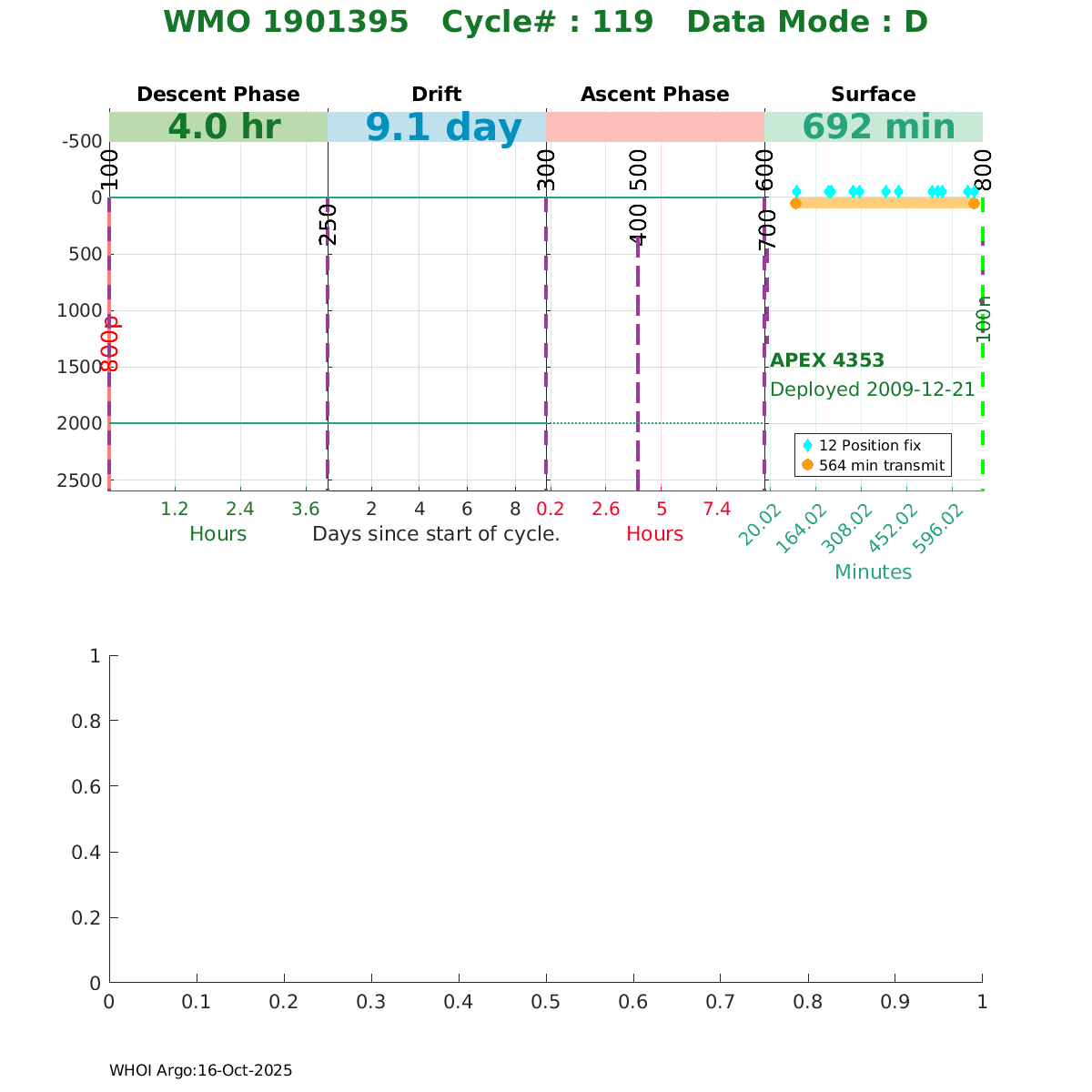 | WMO: #1901395 DAC: aoml PI: STEPHEN RISER APEX: #4353 SBE41: #4260 DRUCK_2900PSIA: #2926584 Altimeter Comparison (IFREMER) EuroArgo Link | ![]() |