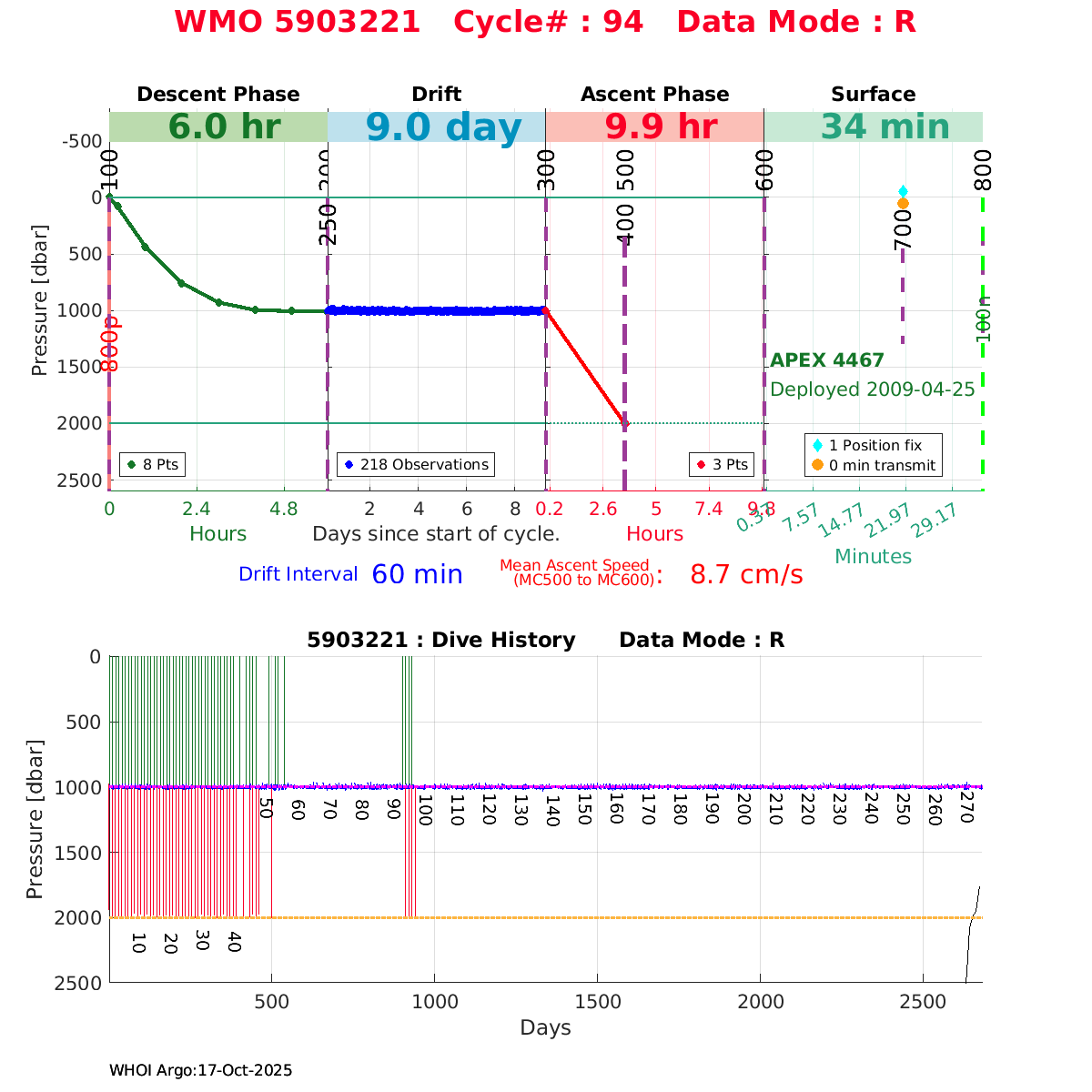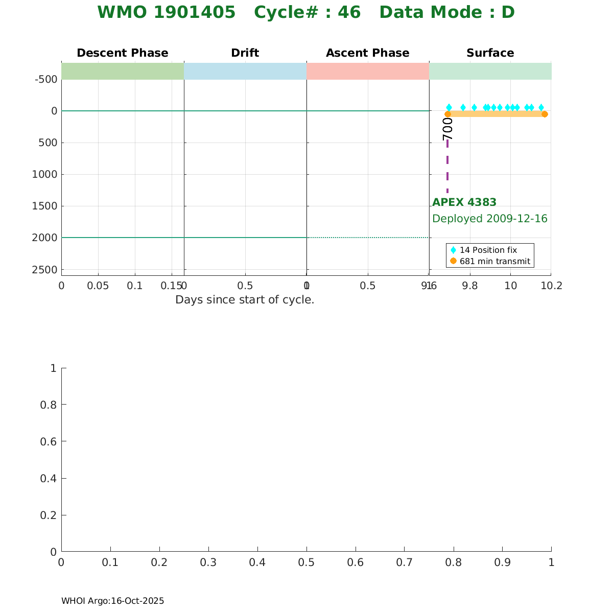 | WMO: #1901405 DAC: aoml PI: STEPHEN RISER APEX: #4383 SBE41: #4303 DRUCK_2900PSIA: #2911499 Altimeter Comparison (IFREMER) EuroArgo Link | ![]() |