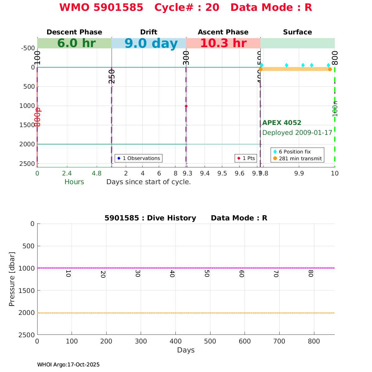 | WMO: #5901585 DAC: jma PI: JAMSTEC APEX: #4052 DRUCK: #2636872 SBE41: #4112 Altimeter Comparison (IFREMER) EuroArgo Link | ![]() |