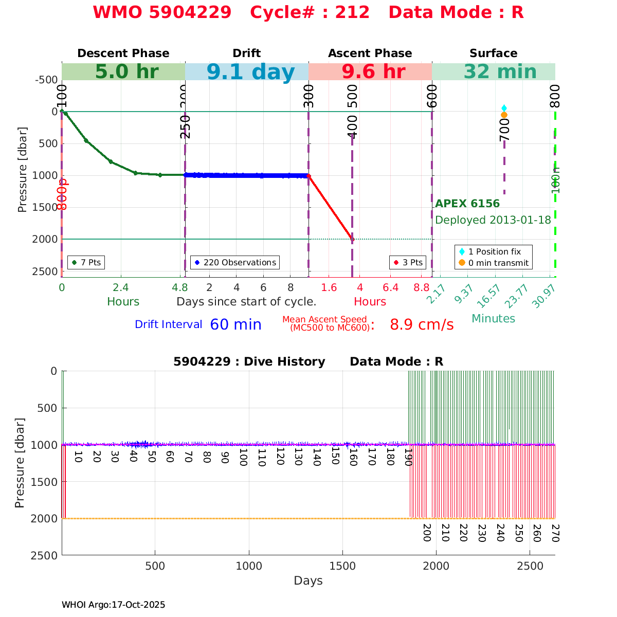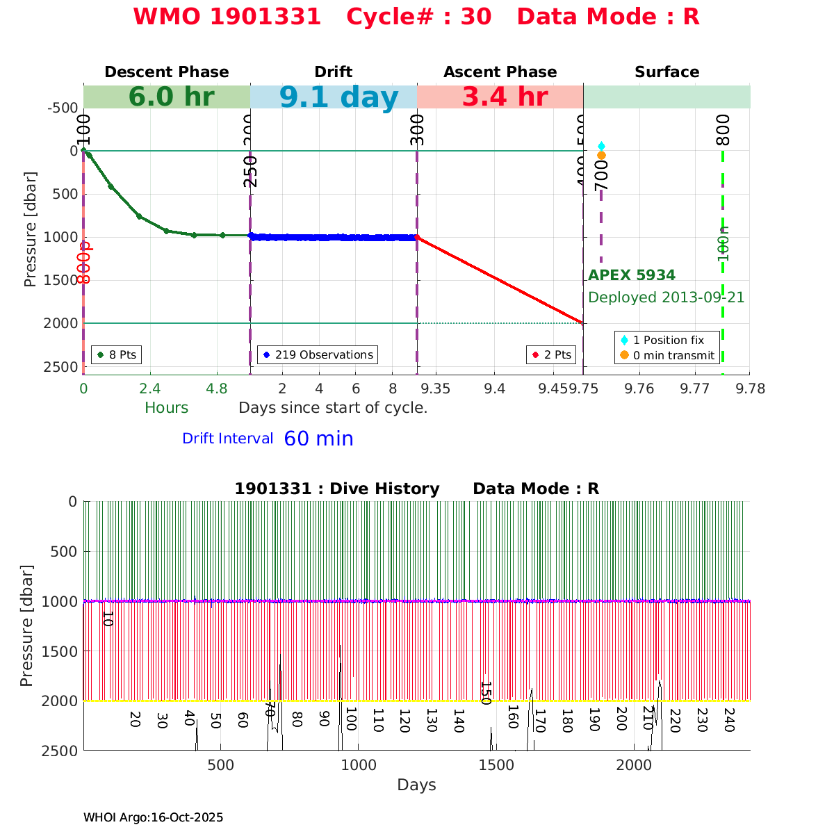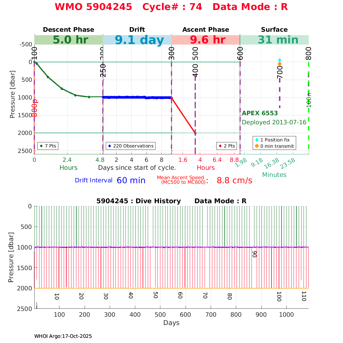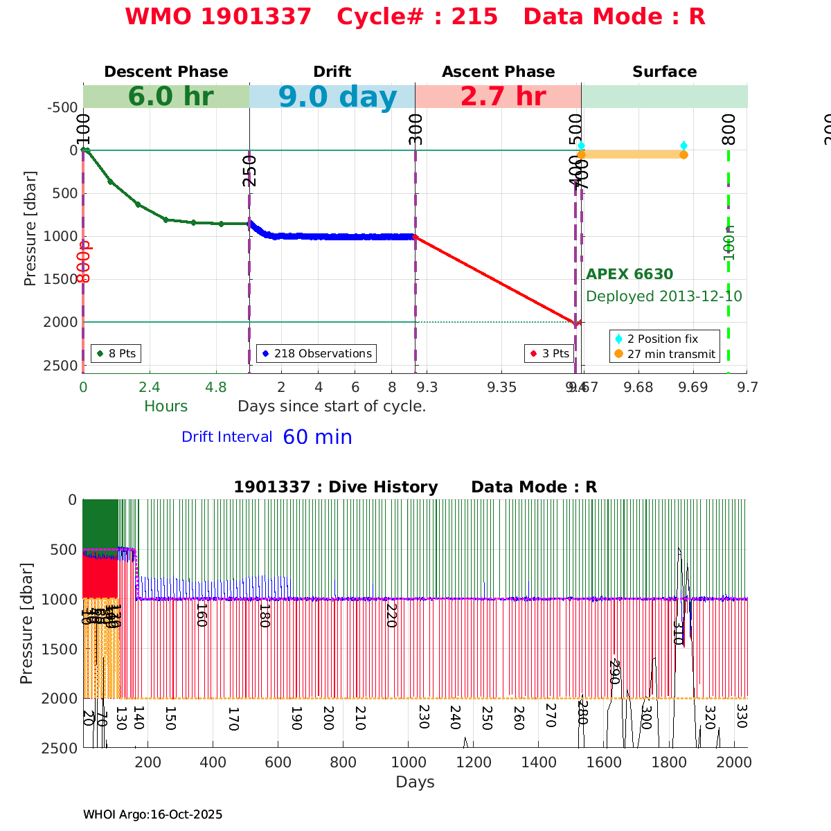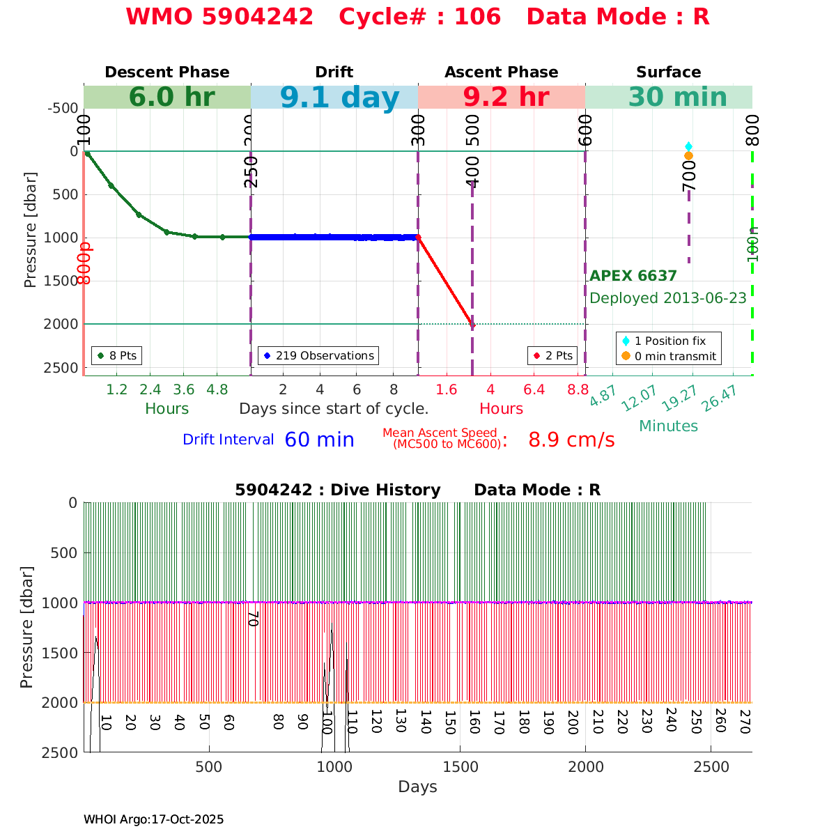 | WMO: #1901337 DAC: csiro PI: Susan Wijffels APEX: #6630 SBE41CP_V2: #5085 DRUCK: #3537423 Altimeter Comparison (IFREMER) EuroArgo Link | ![]() |