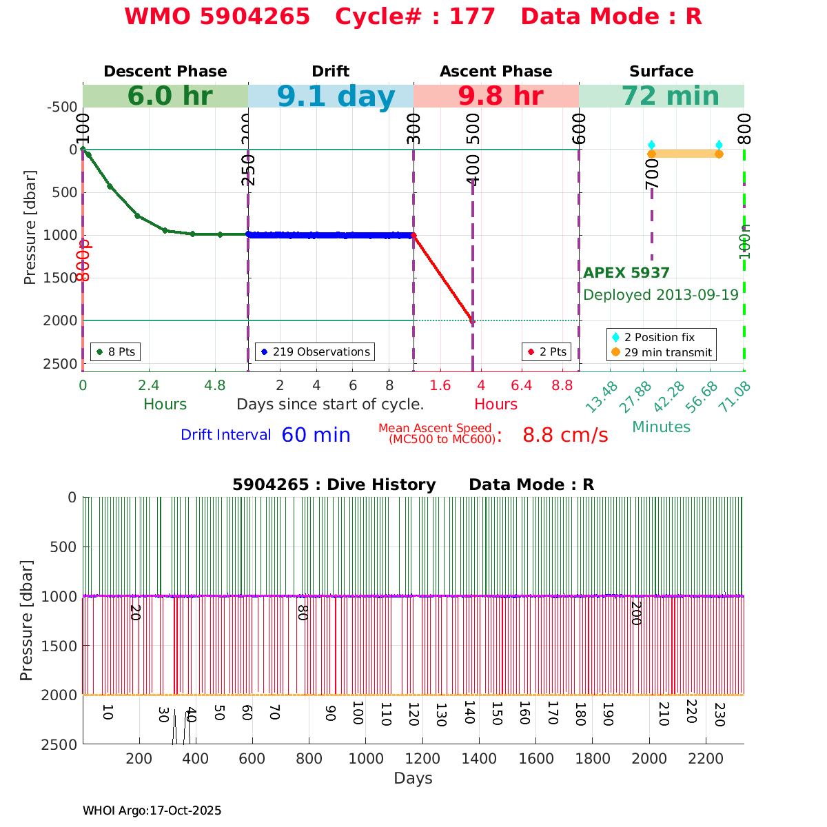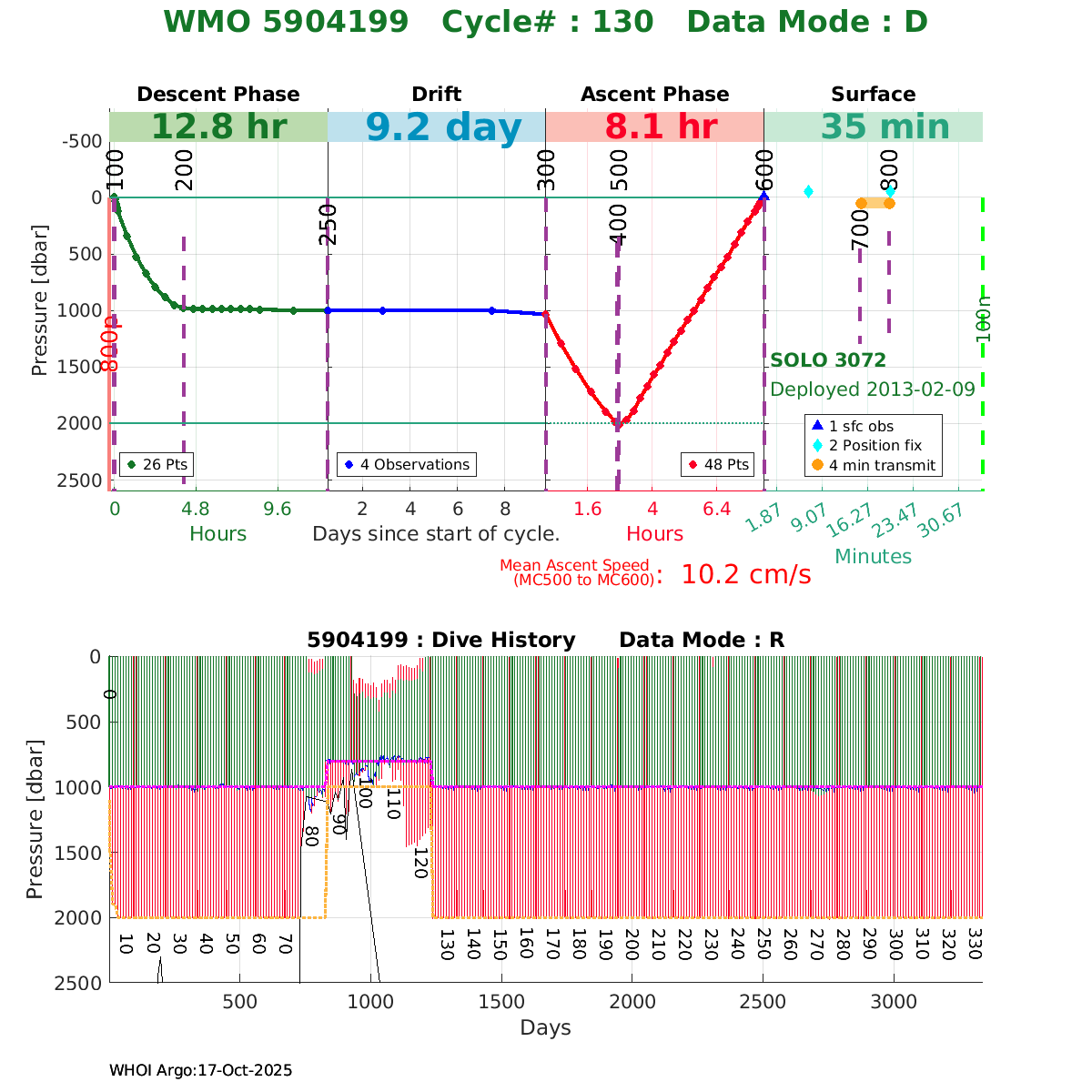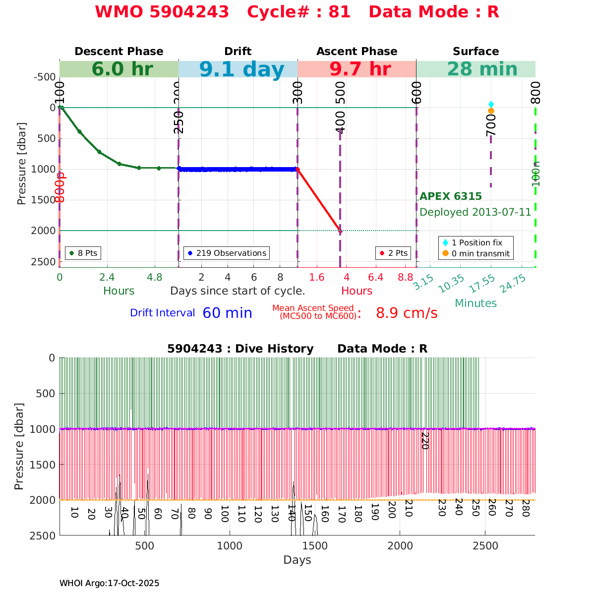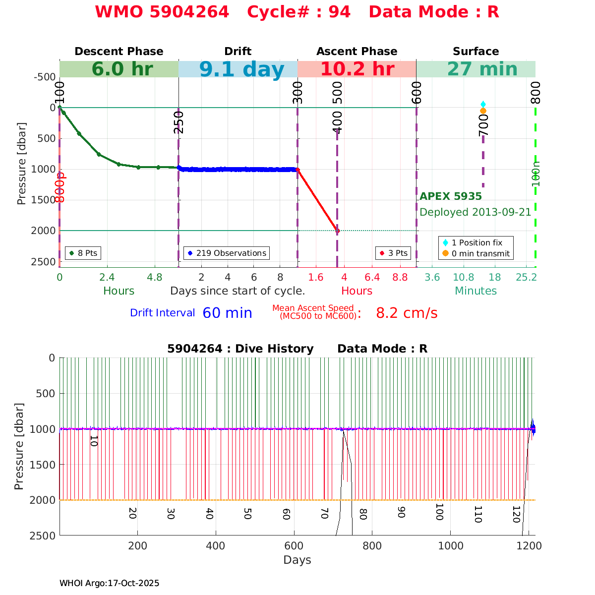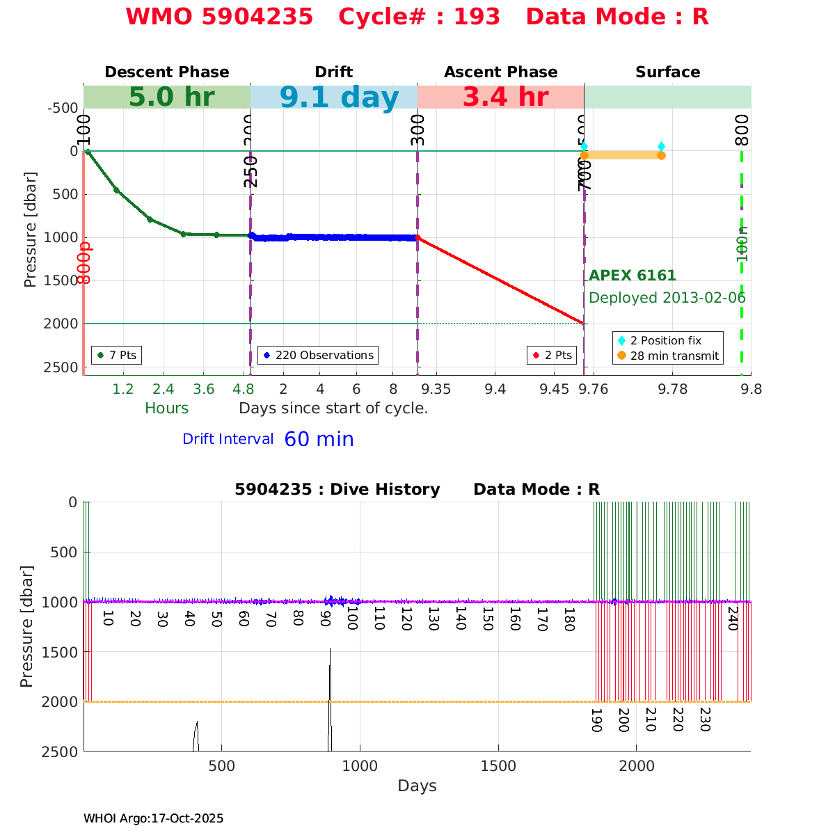 | WMO: #1901337 DAC: csiro PI: Susan Wijffels APEX: #6630 SBE41CP_V2: #5085 DRUCK: #3537423 Altimeter Comparison (IFREMER) EuroArgo Link | ![]() |