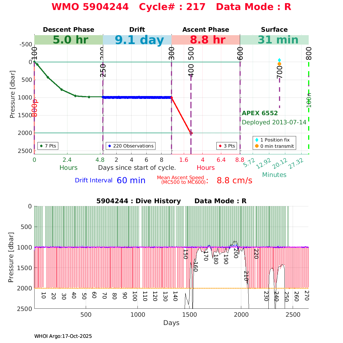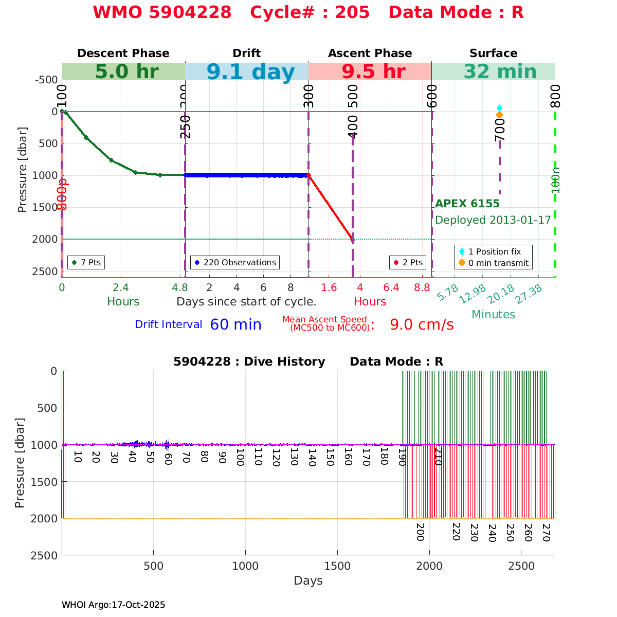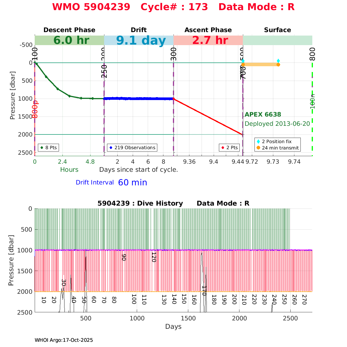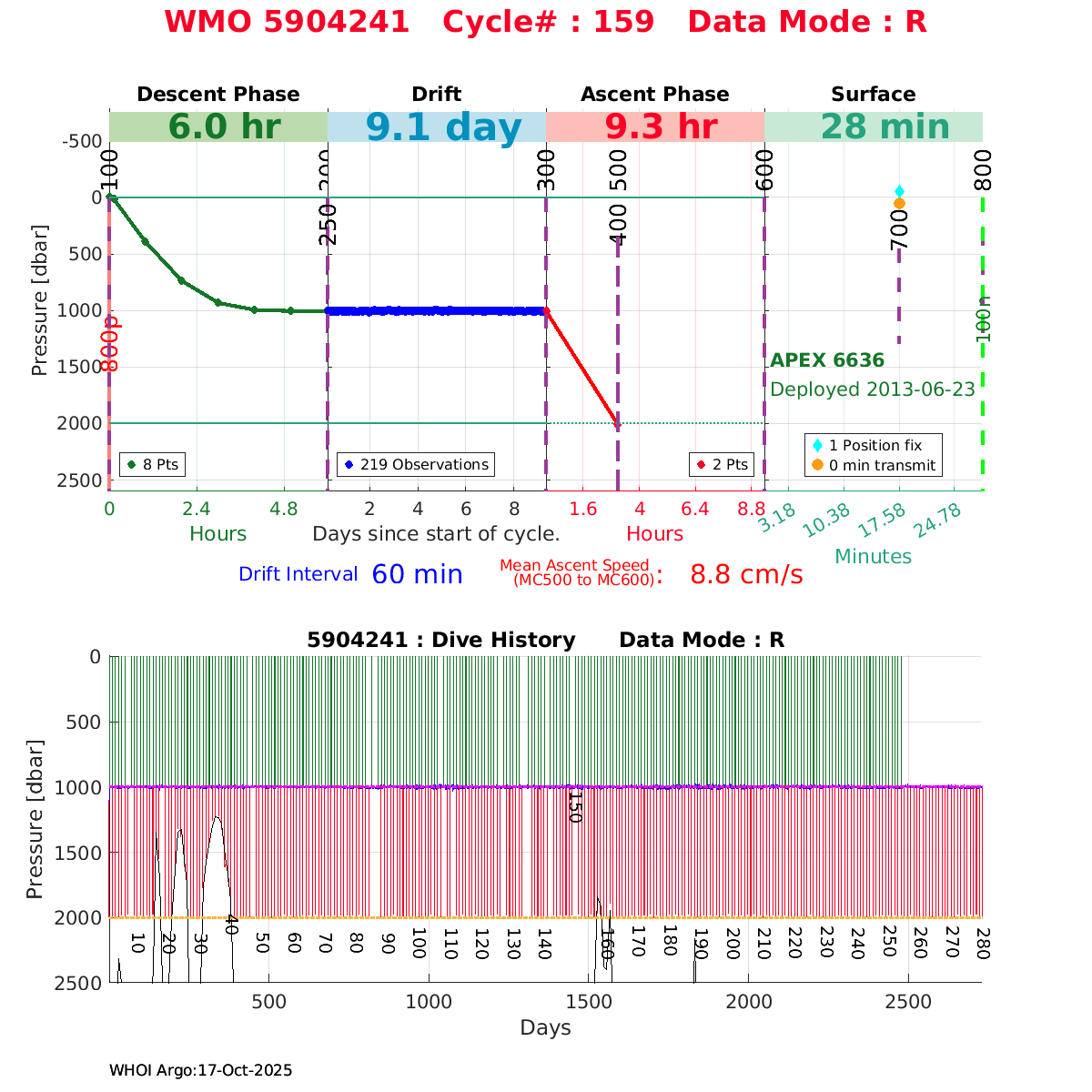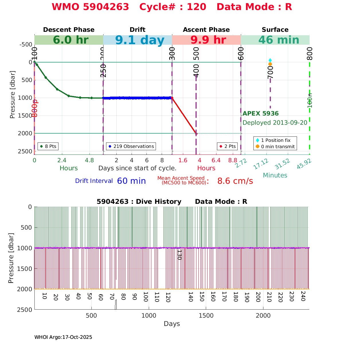 | WMO: #1901337 DAC: csiro PI: Susan Wijffels APEX: #6630 SBE41CP_V2: #5085 DRUCK: #3537423 Altimeter Comparison (IFREMER) EuroArgo Link | ![]() |