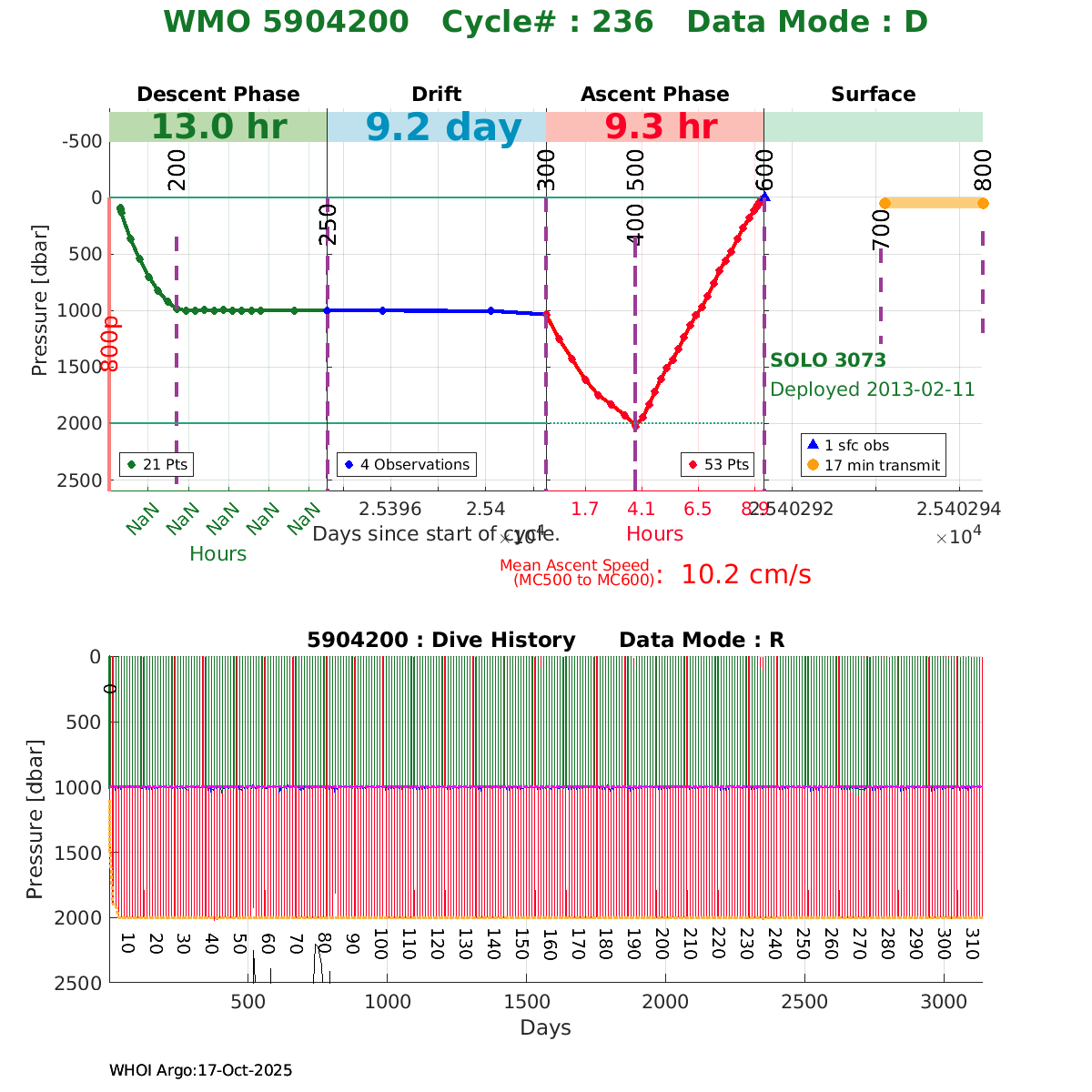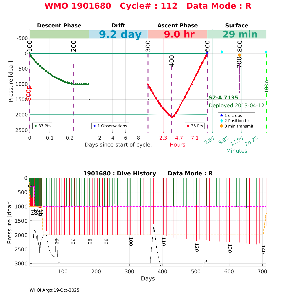 | WMO: #1901680 DAC: aoml PI: BRECK OWENS S2-A: #7135 SBE41CP: #4485 DRUCK_2900PSIA: #3556950 Altimeter Comparison (IFREMER) EuroArgo Link | ![]() |
