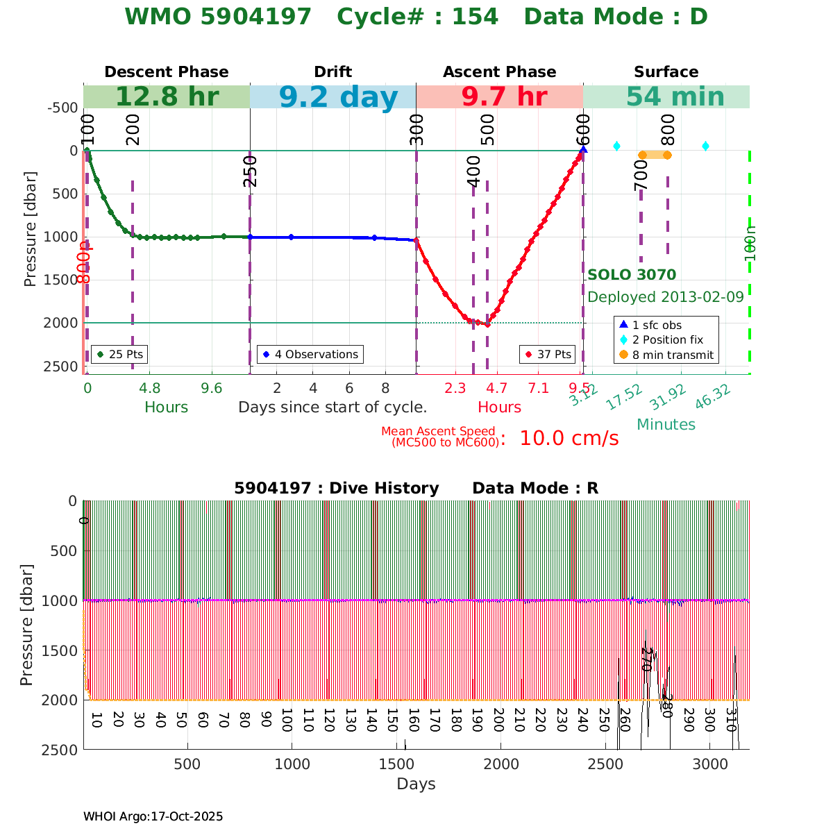 | WMO: #2902574 DAC: csio PI: ZENGHONG LIU PROVOR: # SBE41CP: #4697 DRUCK_2900PSIA: #4697 Altimeter Comparison (IFREMER) EuroArgo Link | ![]() |
