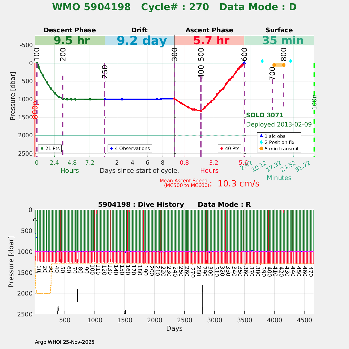 | WMO: #5904198 DAC: aoml PI: Dean ROEMMICH SOLO: #3071 DRUCK_2900PSIA: #3544194 SBE41CP: #4651 Altimeter Comparison (IFREMER) EuroArgo Link | ![]() |