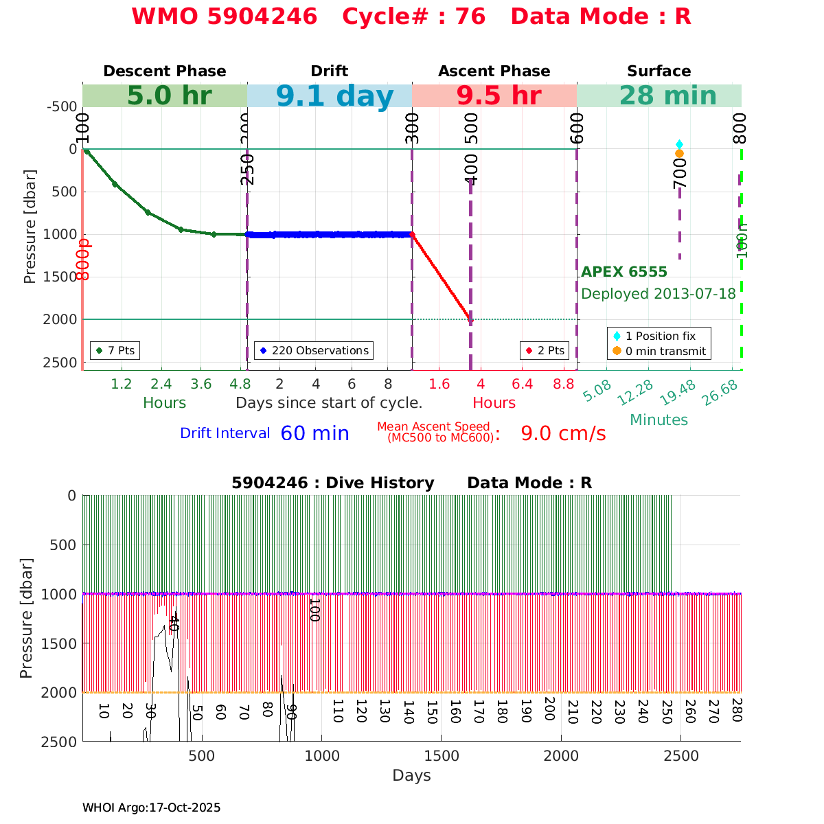 | WMO: #5904246 DAC: csiro PI: Susan Wijffels APEX: #6555 SBE41CP_V2: #4057 DRUCK: #3458985 Altimeter Comparison (IFREMER) EuroArgo Link | ![]() |