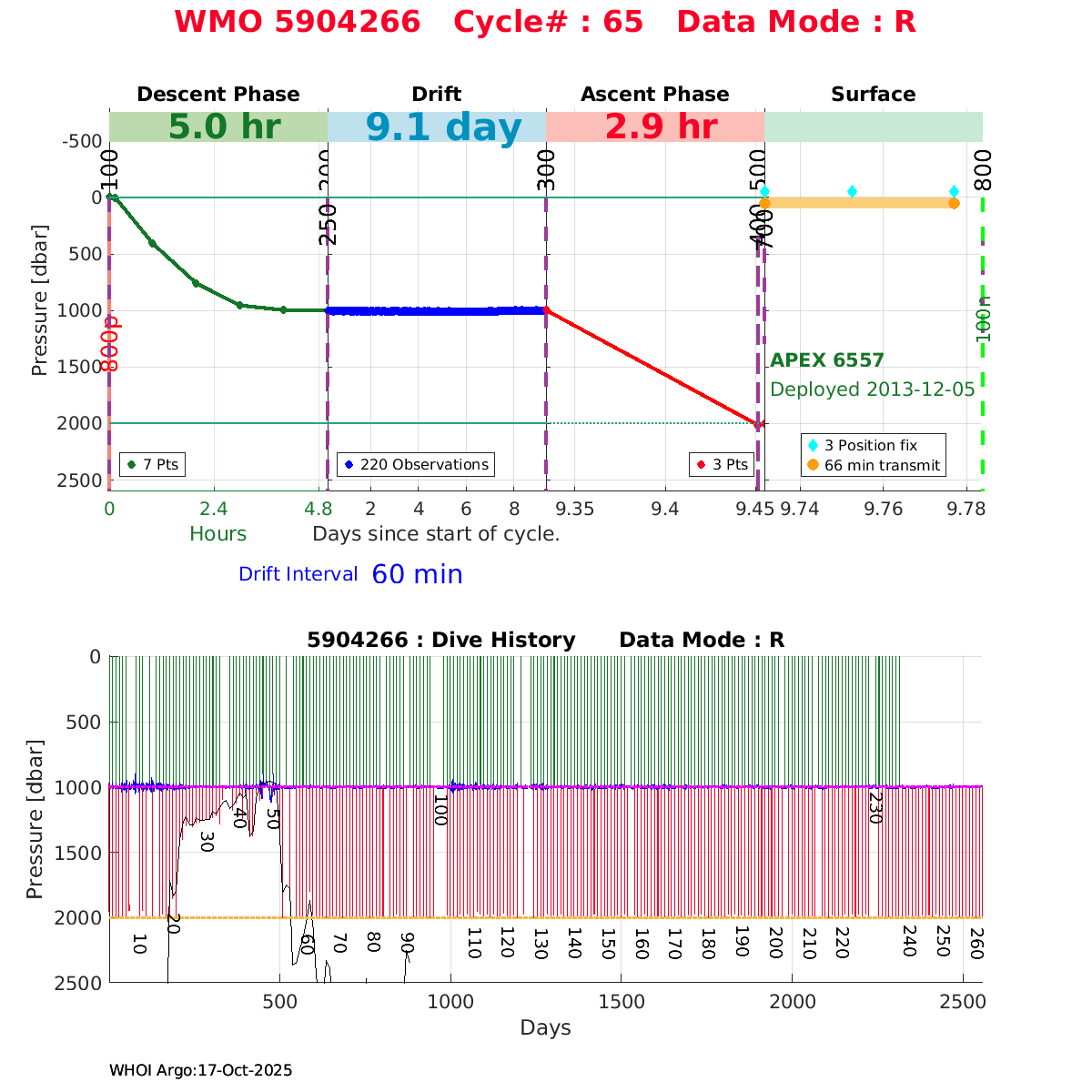 | WMO: #5904266 DAC: csiro PI: Susan Wijffels APEX: #6557 SBE41CP_V2: #4837 DRUCK: #3468722 Altimeter Comparison (IFREMER) EuroArgo Link | ![]() |