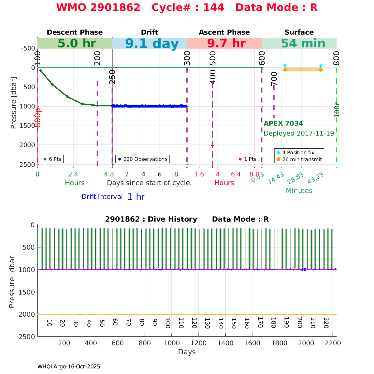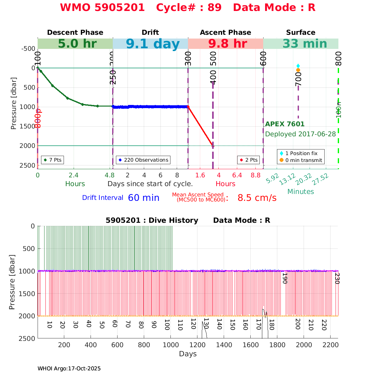 | WMO: #2901904 DAC: bodc PI: Jon Turton APEX: #7594 DRUCK_2900PSIA: #10173194 SBE41: #7835 Altimeter Comparison (IFREMER) EuroArgo Link | ![]() |