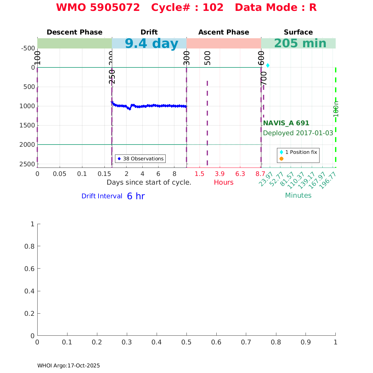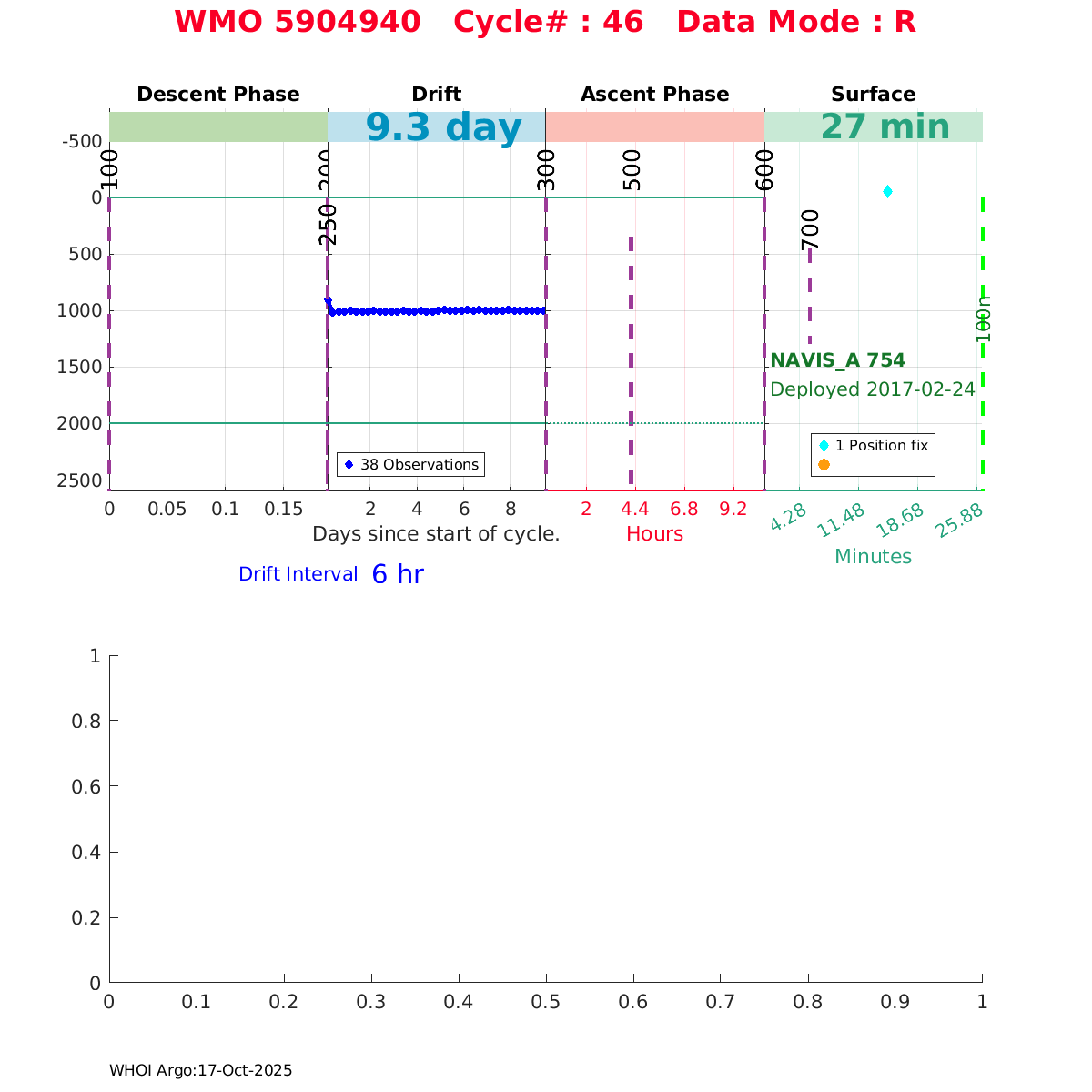 | WMO: #5905064 DAC: jma PI: JAMSTEC ARVOR: # KISTLER: #2139314 SBE41CP_V2: #5476 Altimeter Comparison (IFREMER) EuroArgo Link | ![]() |