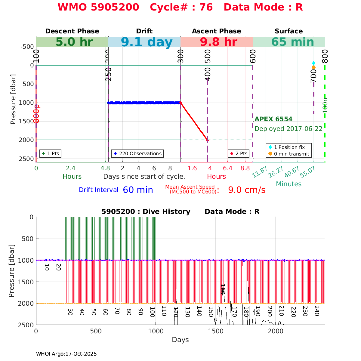 | WMO: #5905200 DAC: csiro PI: Susan Wijffels APEX: #6554 SBE41CP_V2: #4118 DRUCK: #3466537 Altimeter Comparison (IFREMER) EuroArgo Link | ![]() |