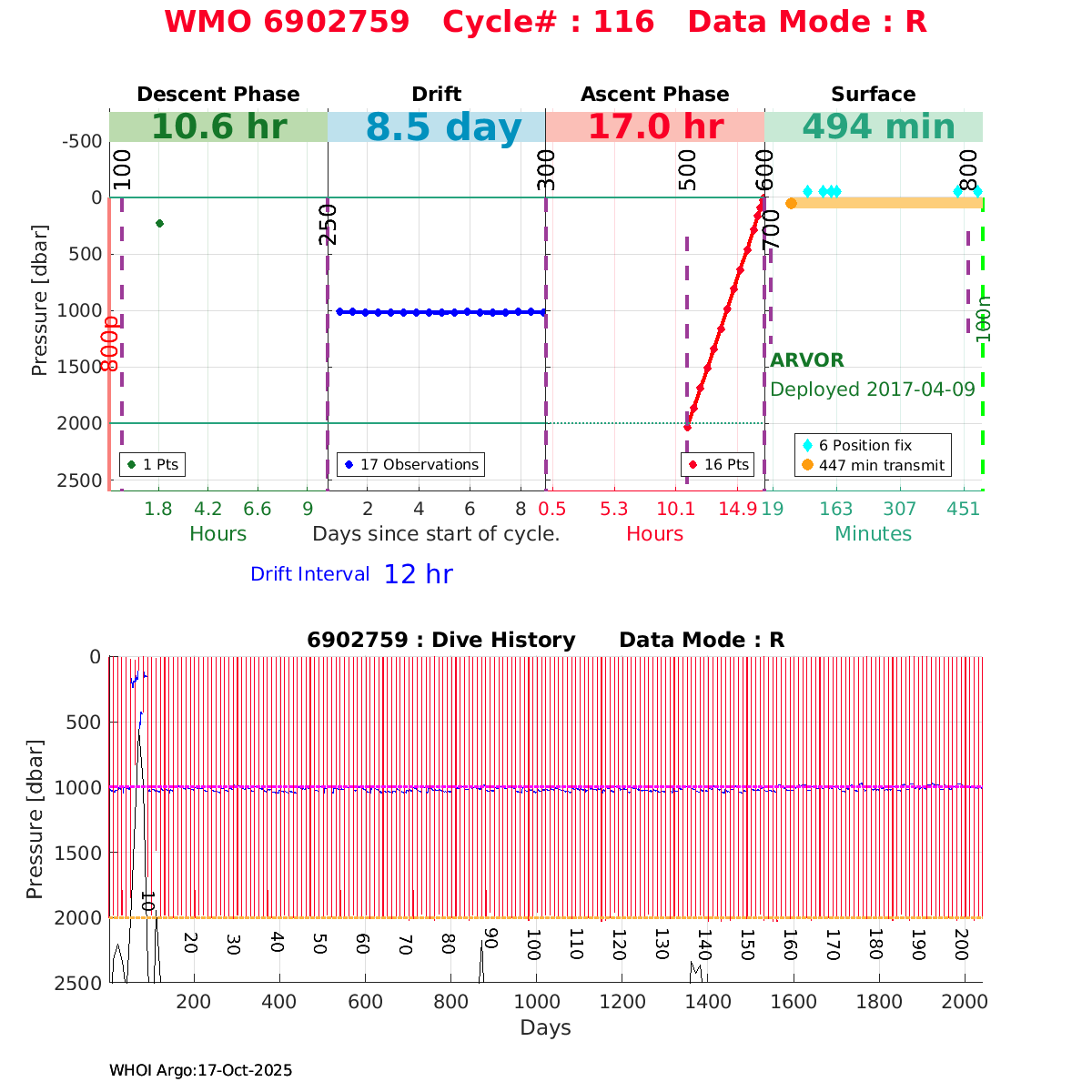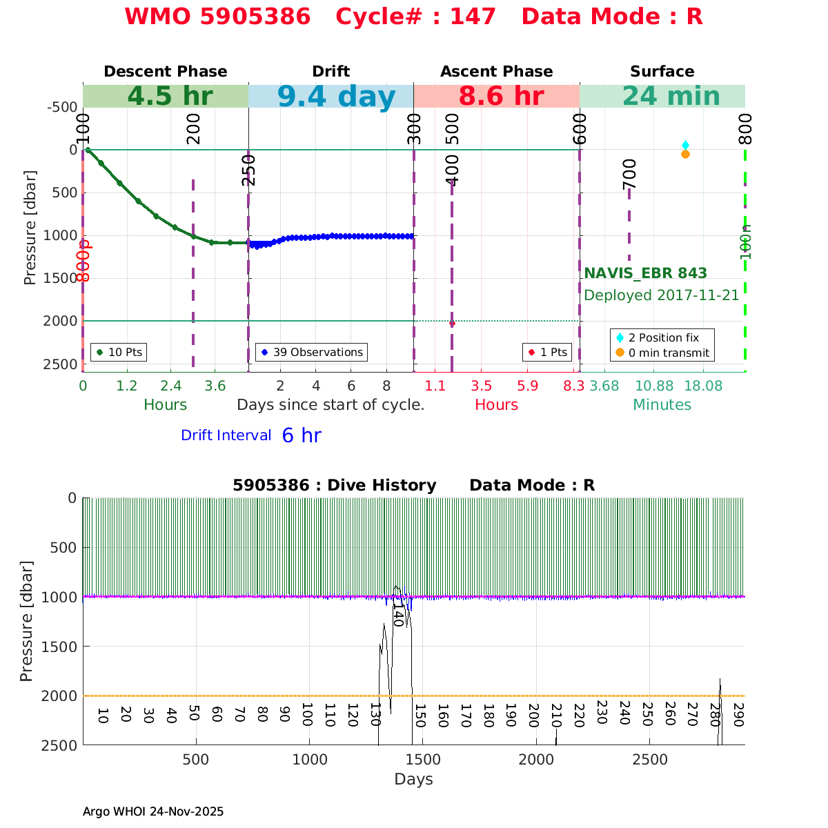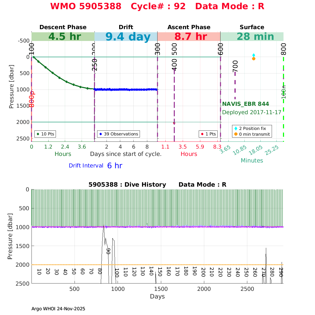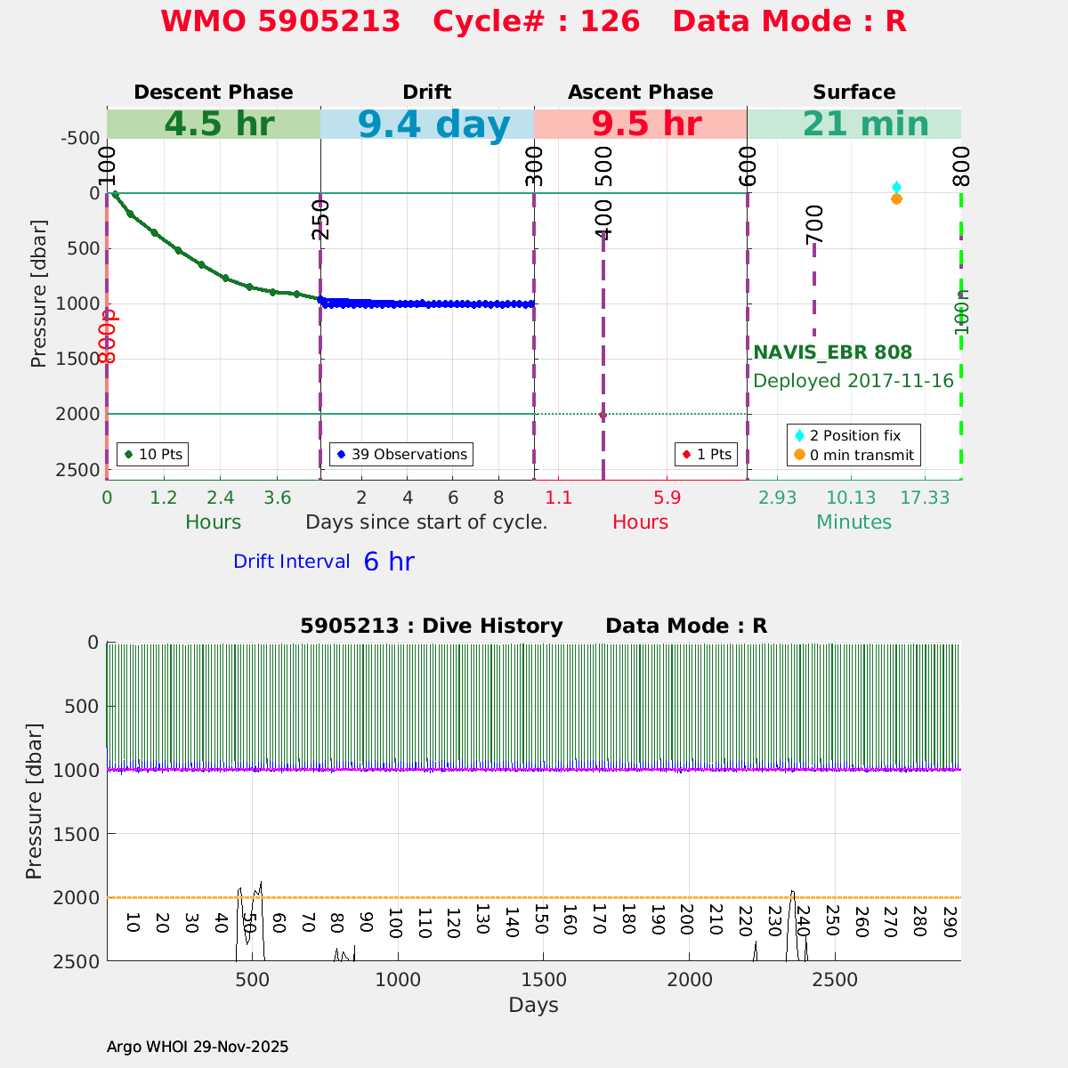 | WMO: #5905214 DAC: csiro PI: Peter OKE NAVIS_EBR: #809 DRUCK: #10444126 SBE41CP: #9468 Altimeter Comparison (IFREMER) EuroArgo Link | ![]() |