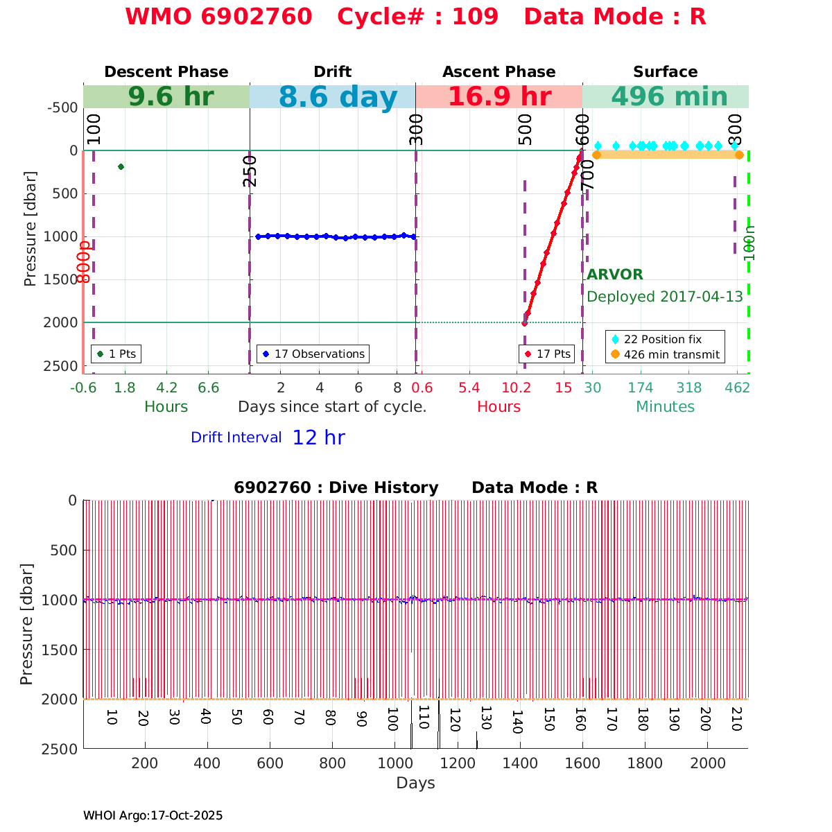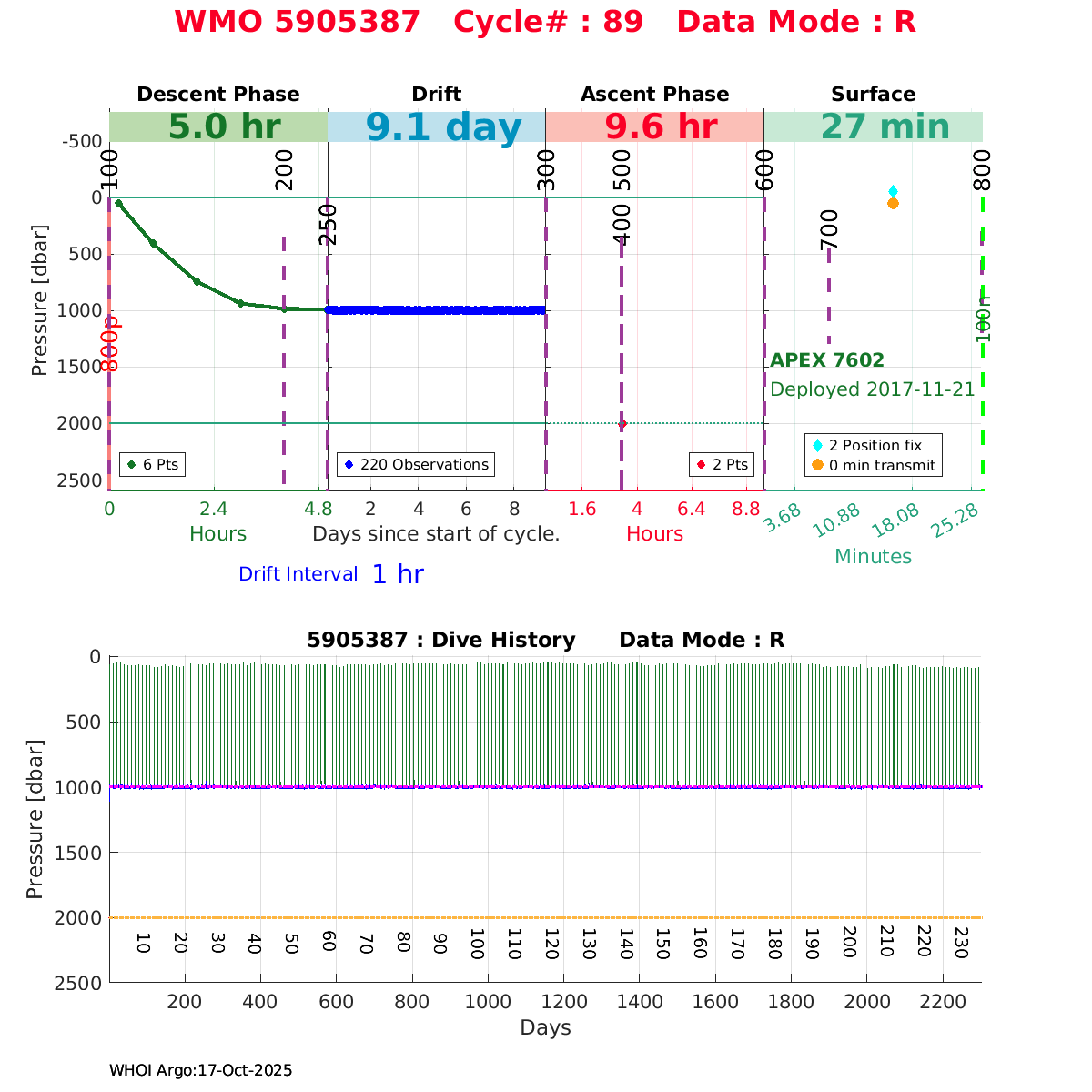 | WMO: #6902715 DAC: coriolis PI: Christine COATANOAN ARVOR: # KISTLER_2900PSIA: #4779983 SBE41CP_V7.2.5: #8227 Altimeter Comparison (IFREMER) EuroArgo Link | ![]() |