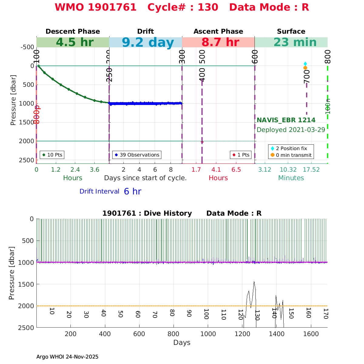 | WMO: #1901761 DAC: csiro PI: Peter OKE NAVIS_EBR: #1214 DRUCK: #11445363 SBE41CP: #12723 Altimeter Comparison (IFREMER) EuroArgo Link | ![]() |