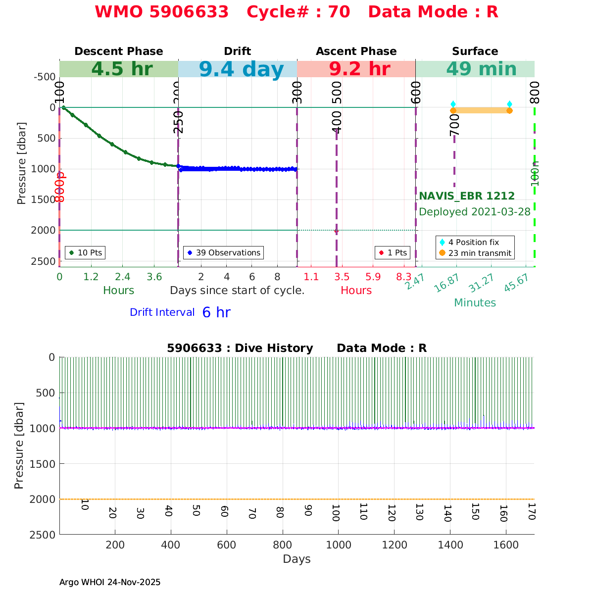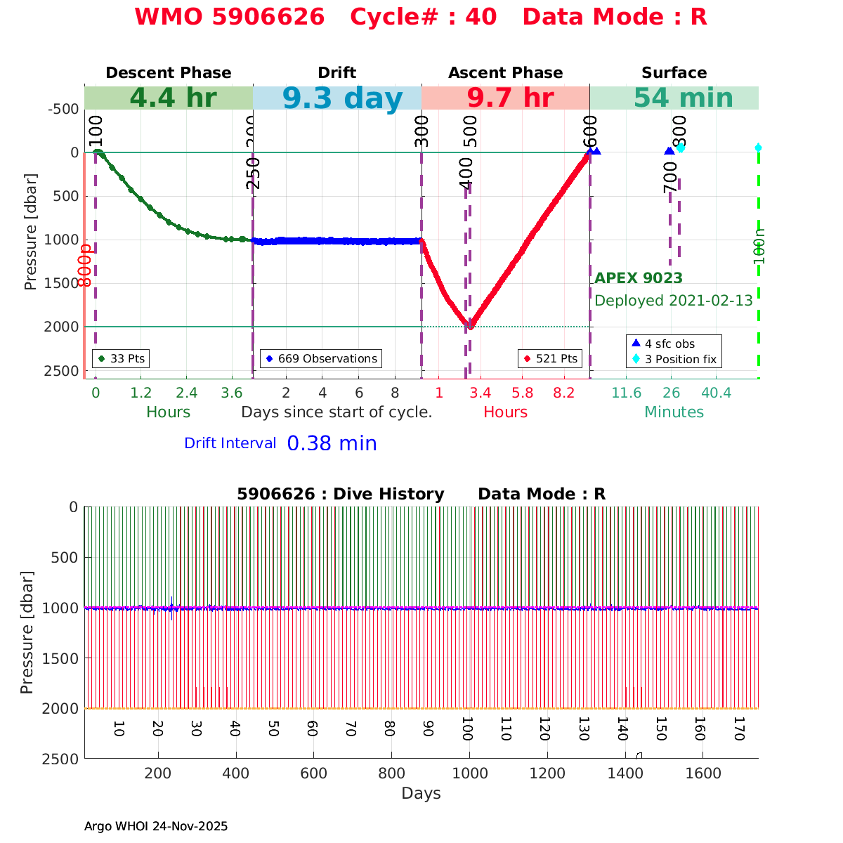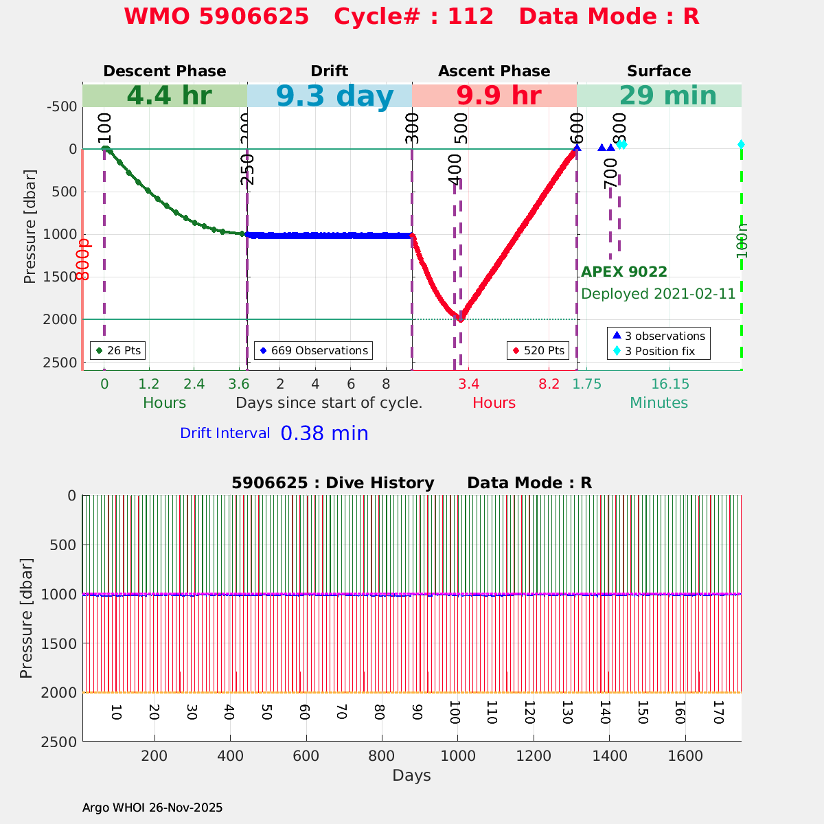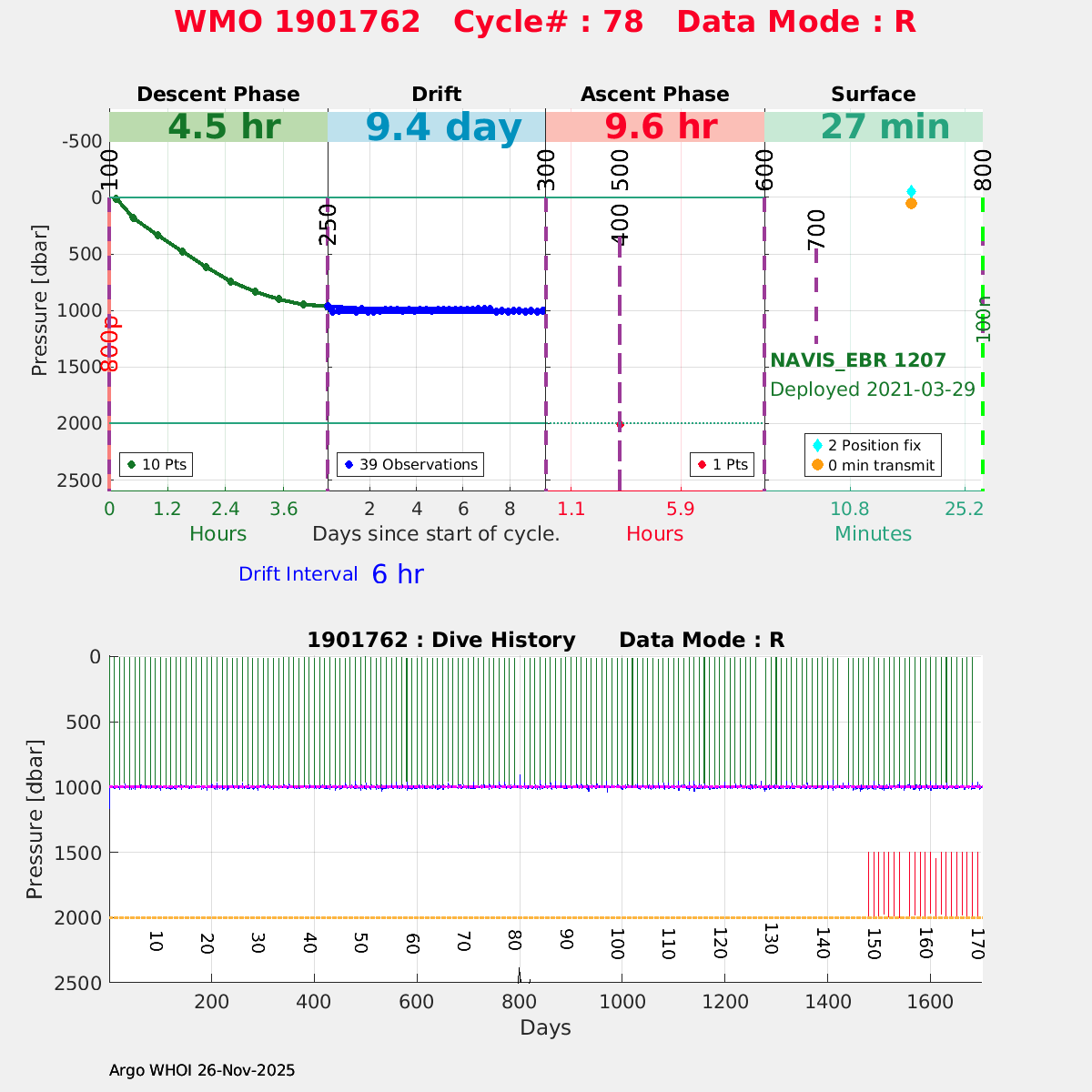 | WMO: #5906626 DAC: csiro PI: Peter OKE APEX: #9023 DRUCK: #11442121 SBE41CP: #12427 Altimeter Comparison (IFREMER) EuroArgo Link | ![]() |