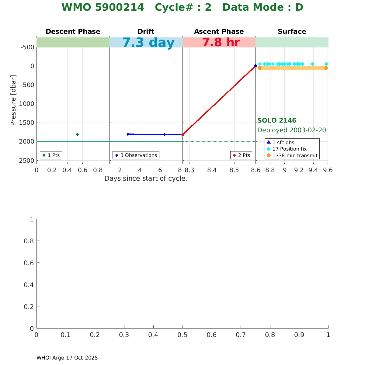 | WMO: #5900217 DAC: aoml PI: DEAN ROEMMICH SOLO: #2149 AMETEK_3000PSIA: #2657714275 SBE41CP_V1.5: #252 Altimeter Comparison (IFREMER) EuroArgo Link | ![]() |