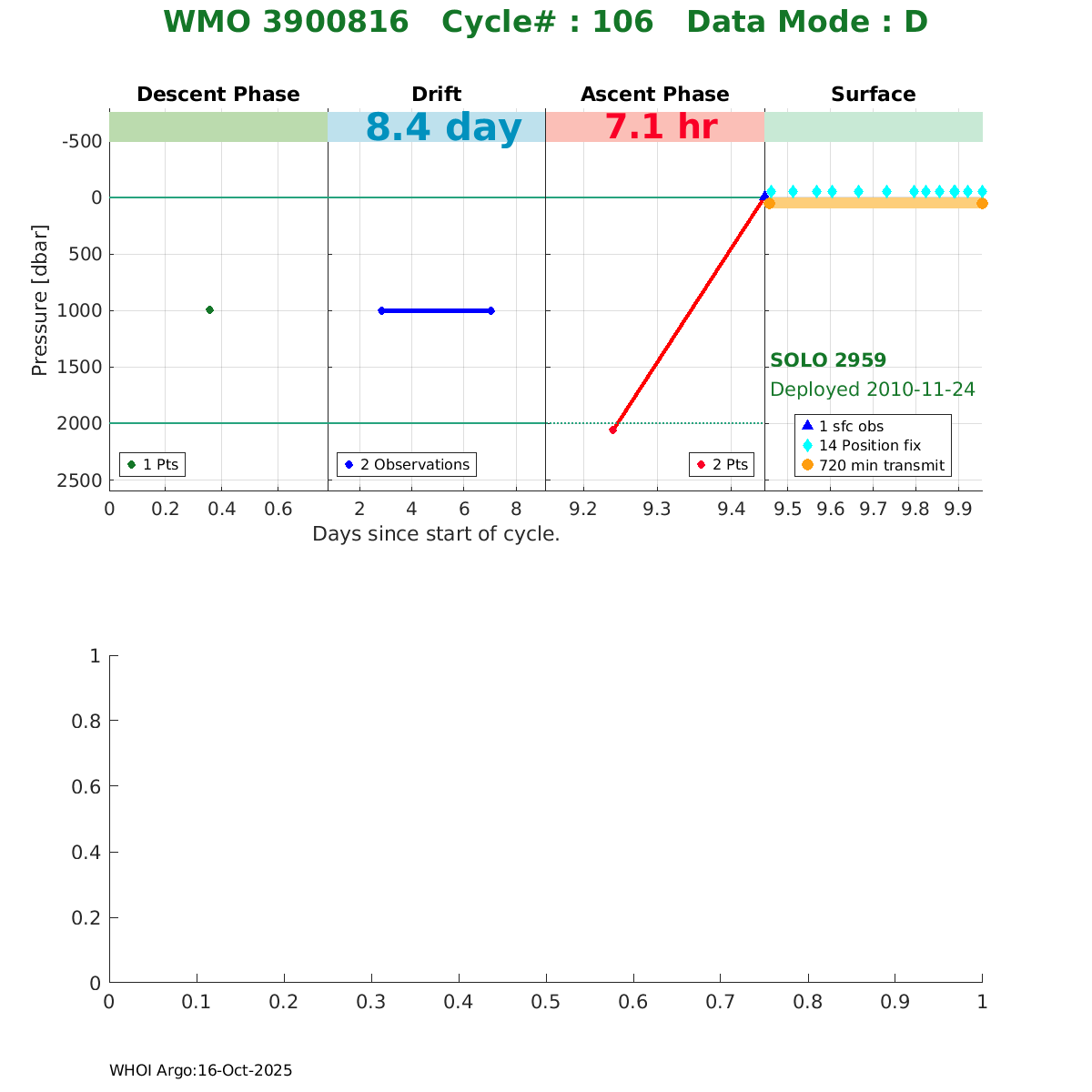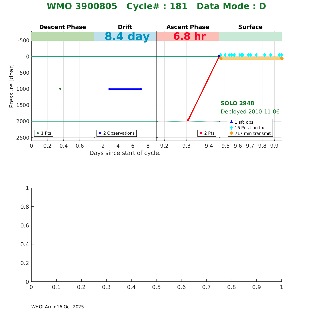 | WMO: #3900815 DAC: aoml PI: DEAN ROEMMICH SOLO: #2958 DRUCK_2900PSIA: #2636826 SBE41CP_V3: #2485 Altimeter Comparison (IFREMER) EuroArgo Link | ![]() |