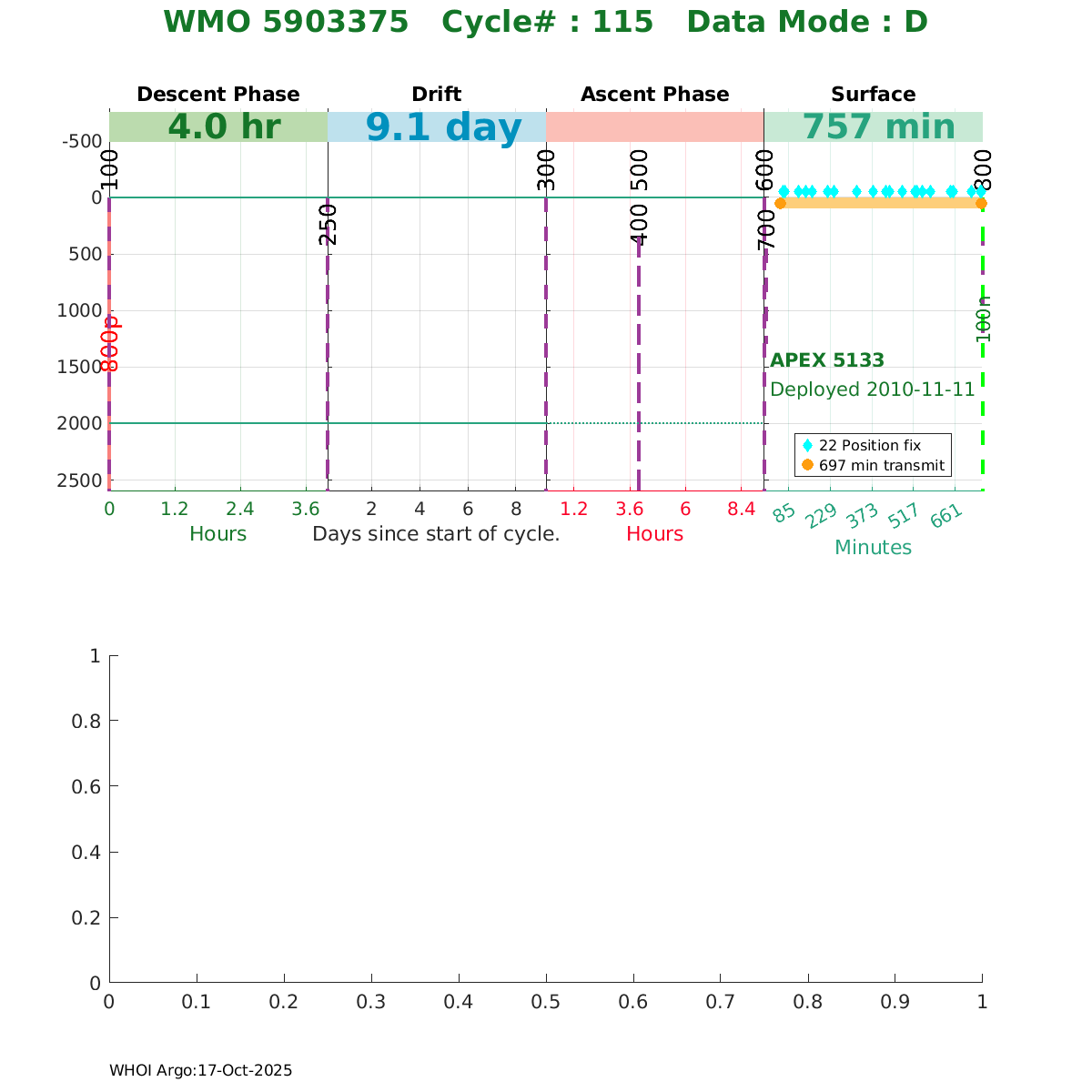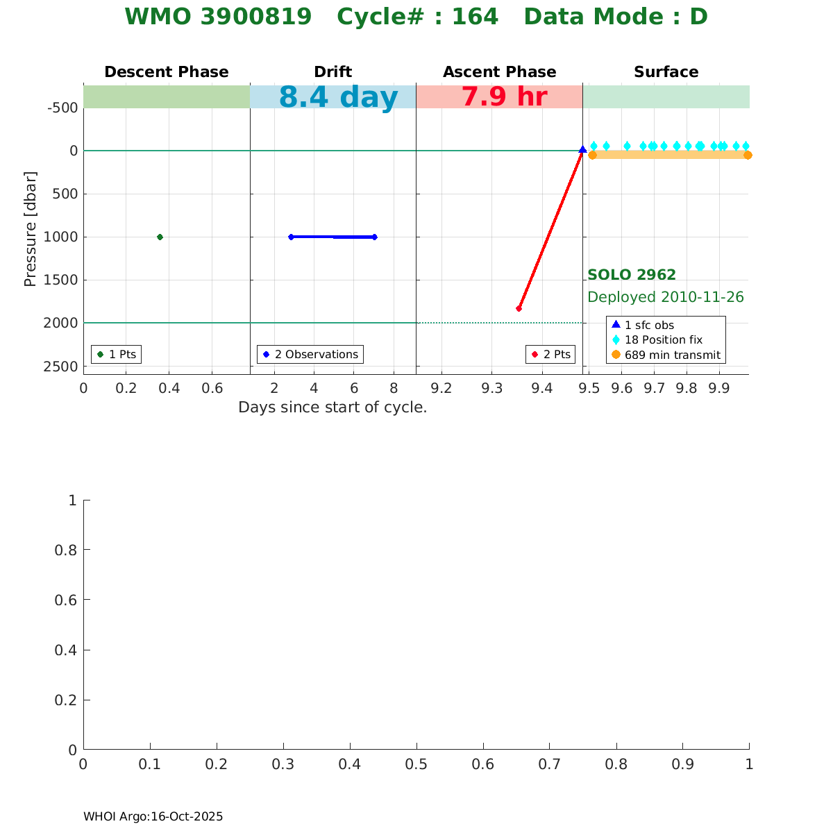 | WMO: #5903375 DAC: aoml PI: STEPHEN RISER APEX: #5133 SBE41: #5029 DRUCK_2900PSIA: #3059505 Altimeter Comparison (IFREMER) EuroArgo Link | ![]() |