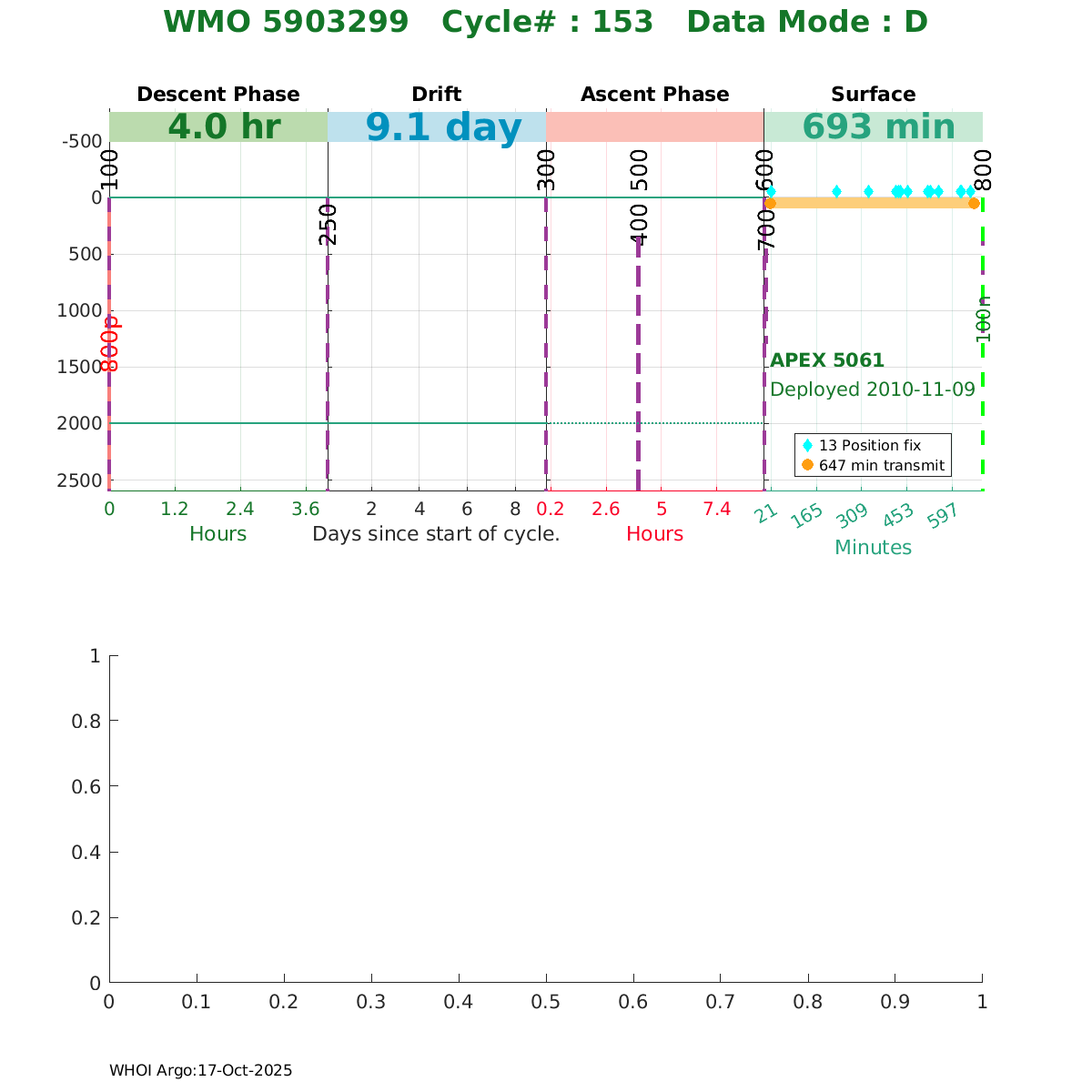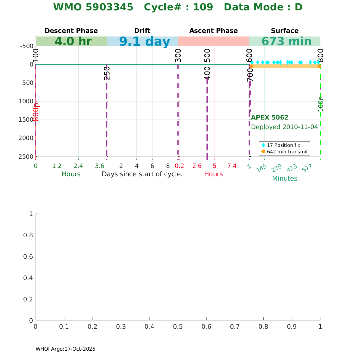 | WMO: #5903350 DAC: aoml PI: STEPHEN RISER APEX: #5134 SBE41: #5020 DRUCK_2900PSIA: #2711944 Altimeter Comparison (IFREMER) EuroArgo Link | ![]() |