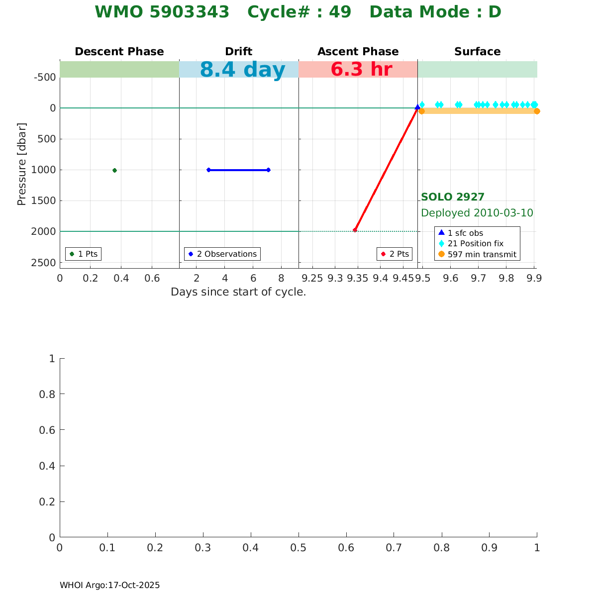 | WMO: #5903343 DAC: aoml PI: DEAN ROEMMICH SOLO: #2927 DRUCK_2900PSIA: #2986858 SBE41CP_V3: #2470 Altimeter Comparison (IFREMER) EuroArgo Link | ![]() |