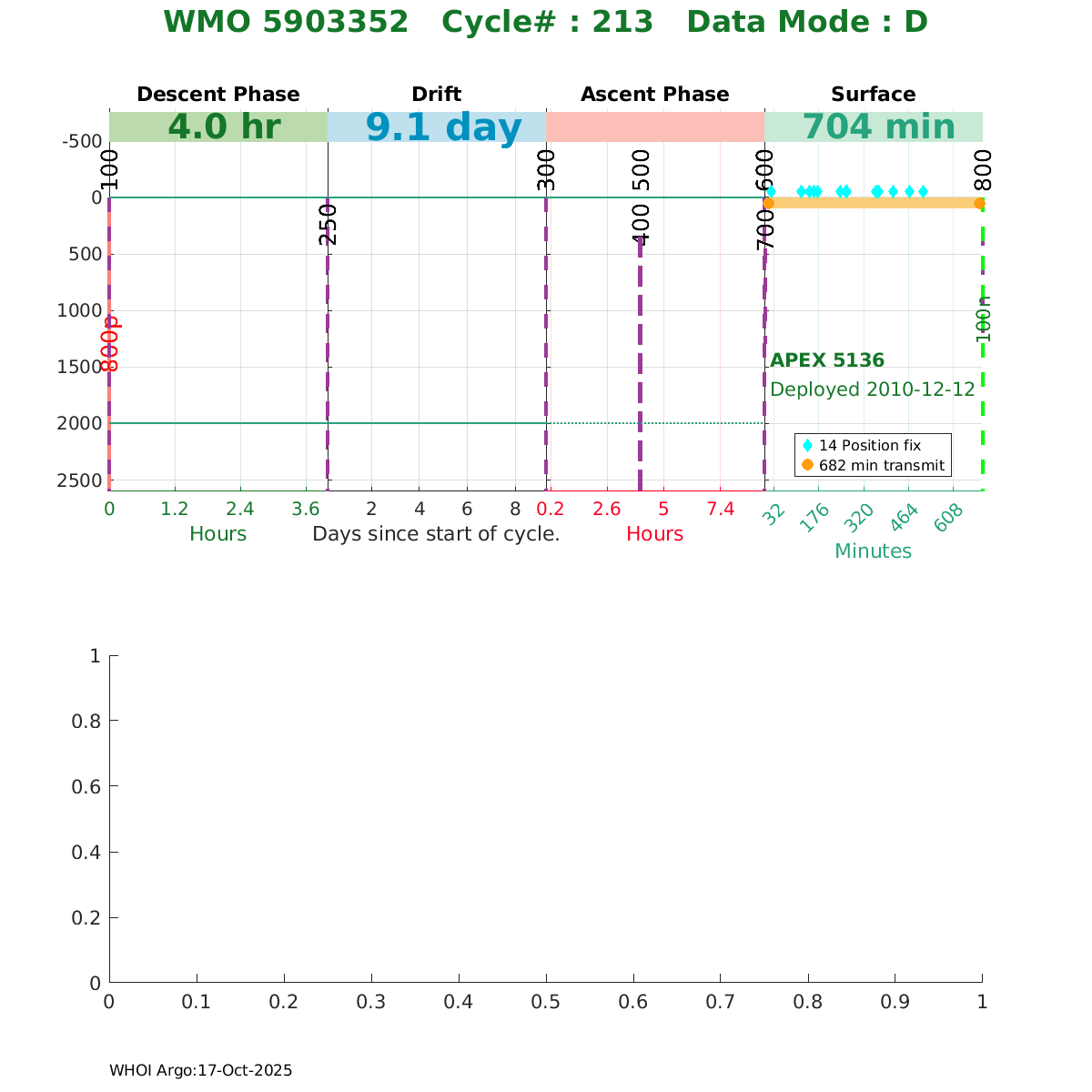 | WMO: #5903631 DAC: csiro PI: Susan Wijffels APEX: #5076 SBE41_V3: #5000 DRUCK: #3061631 Altimeter Comparison (IFREMER) EuroArgo Link | ![]() |