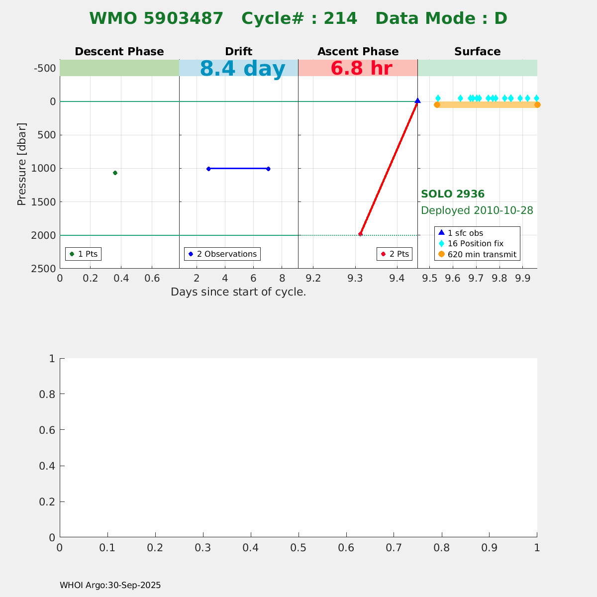 | WMO: #5903487 DAC: aoml PI: DEAN ROEMMICH SOLO: #2936 DRUCK_2900PSIA: #2629883 SBE41CP_V3: #2478 Altimeter Comparison (IFREMER) EuroArgo Link | ![]() |