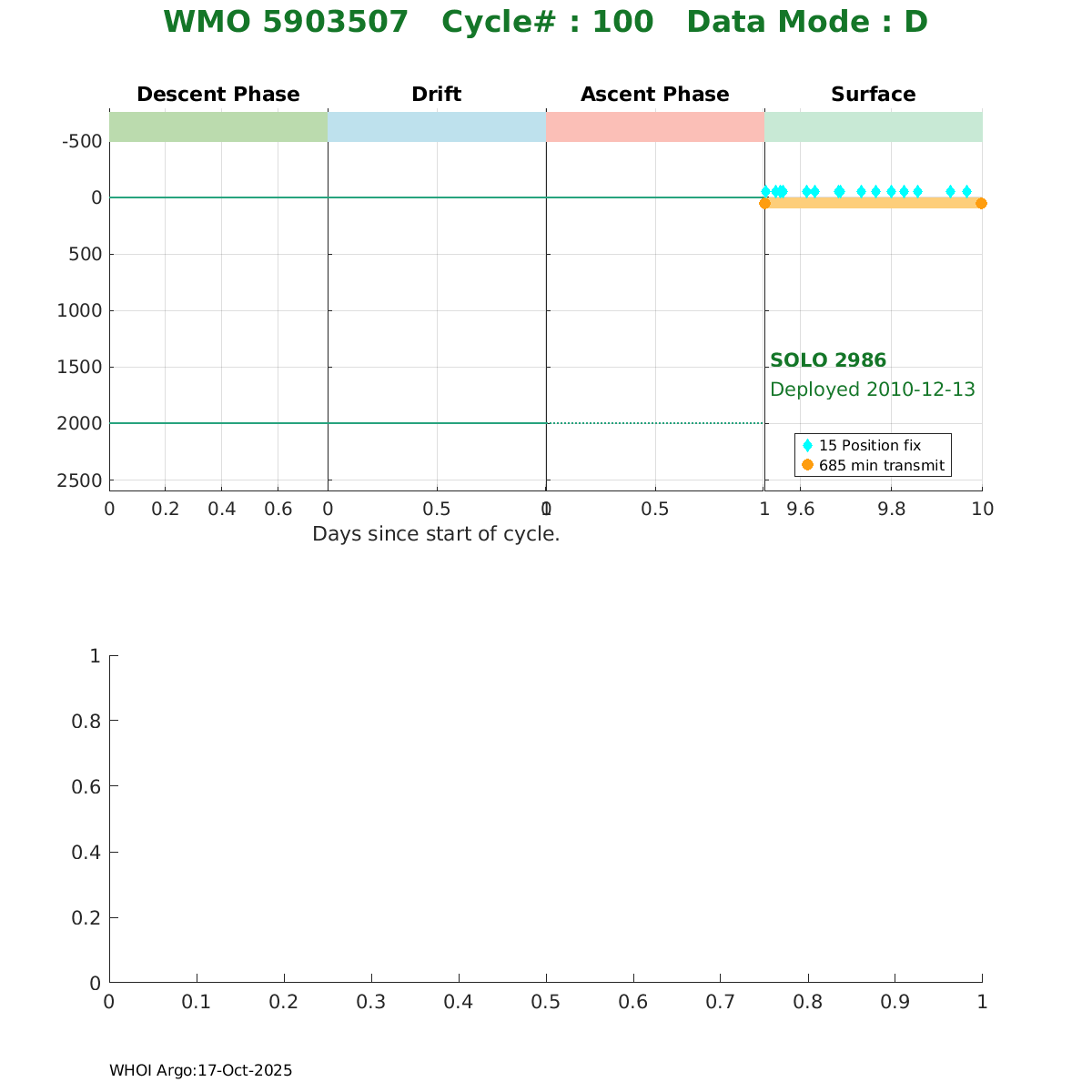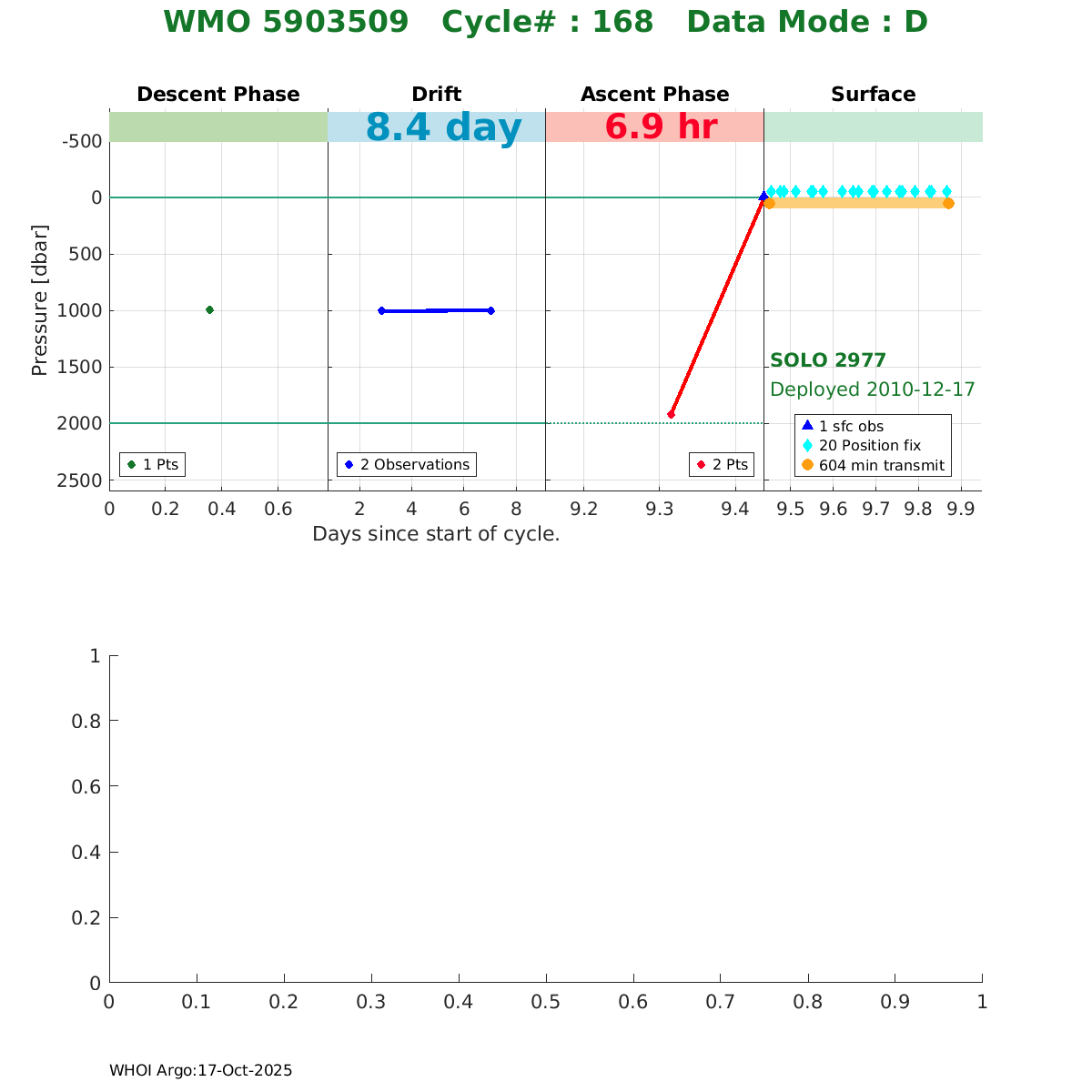 | WMO: #5903507 DAC: aoml PI: DEAN ROEMMICH SOLO: #2986 DRUCK_2900PSIA: #2985668 SBE41CP_V3: #2450 Altimeter Comparison (IFREMER) EuroArgo Link | ![]() |