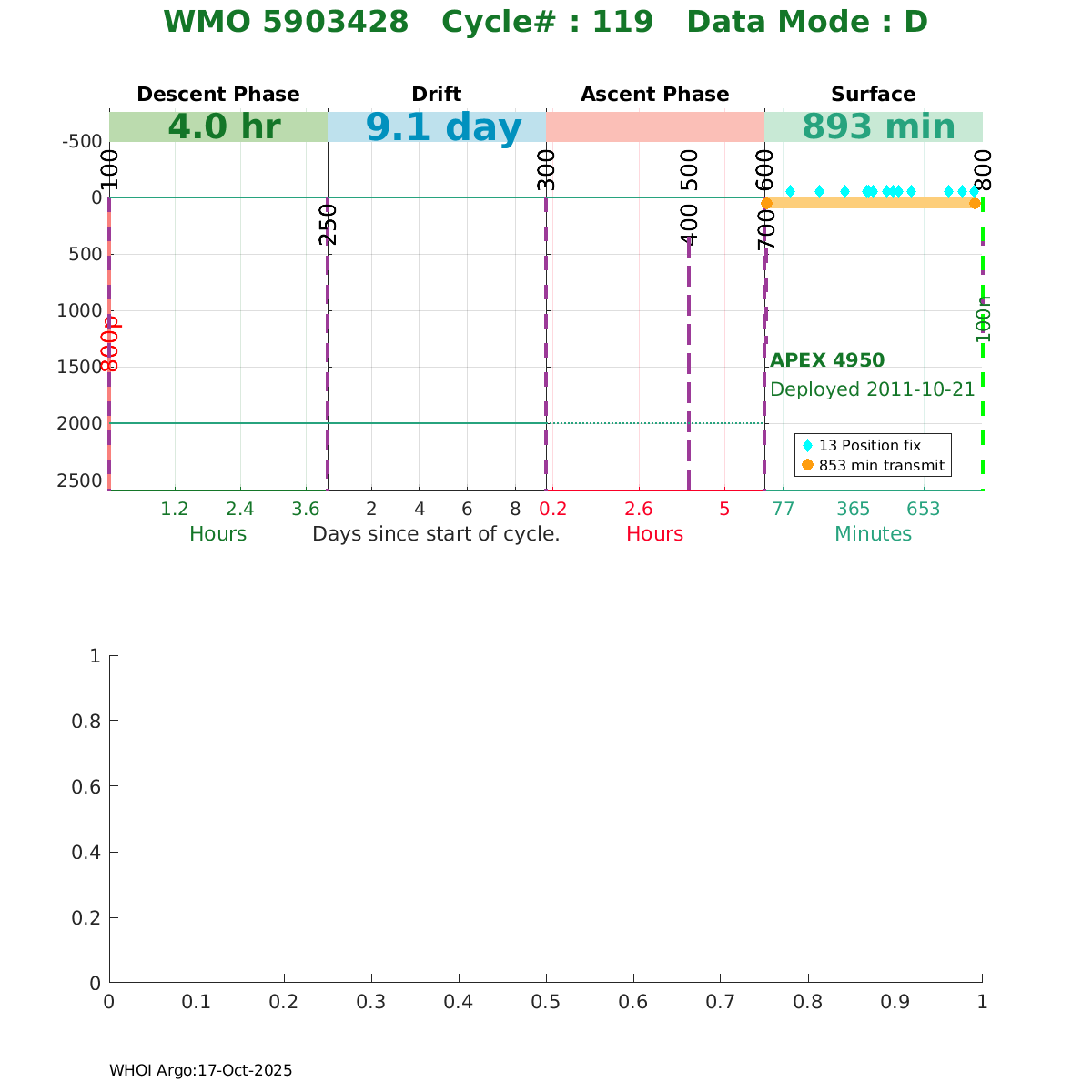 | WMO: #5903428 DAC: aoml PI: STEPHEN RISER APEX: #4950 SBE41: #4965 DRUCK_2900PSIA: #2723962 Altimeter Comparison (IFREMER) EuroArgo Link | ![]() |